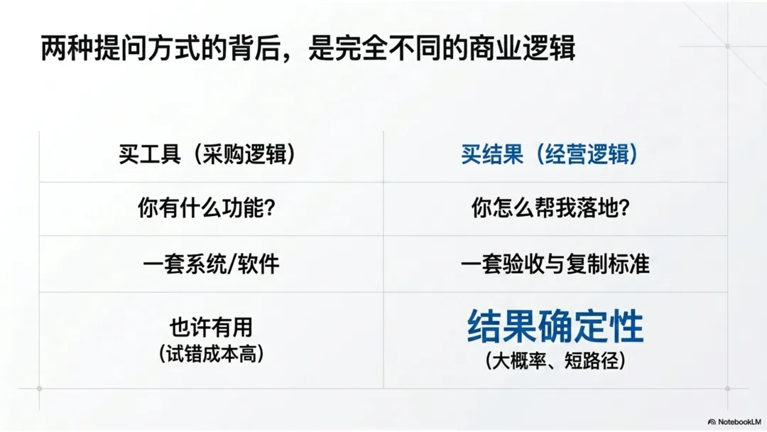 真正高价值的生意,卖的从来不是工具,而是结果确定性。