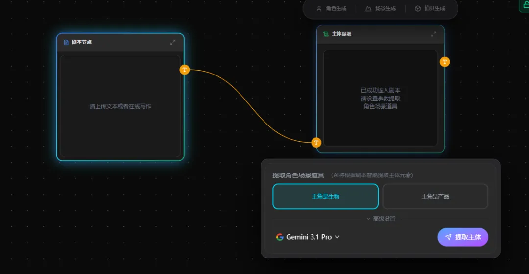 点「主体提取」→ 填写提取需求(越详细越好)→ 选 AI 模型 → 点「提取主体」