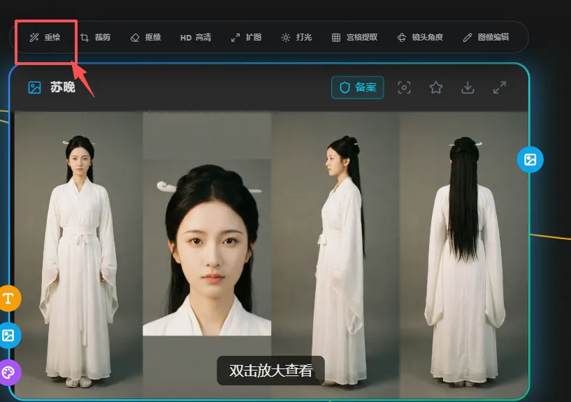 对不满意的图点「重绘」→ 涂抹需要修改的区域 → 填写重绘需求