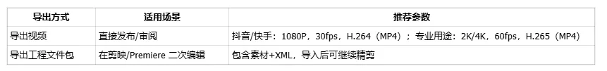 导出前务必完整预览一遍,检查画面/声音/字幕。导出是云端处理,需保持网络畅通,大分辨率文件提前确保本地存储空间充足。