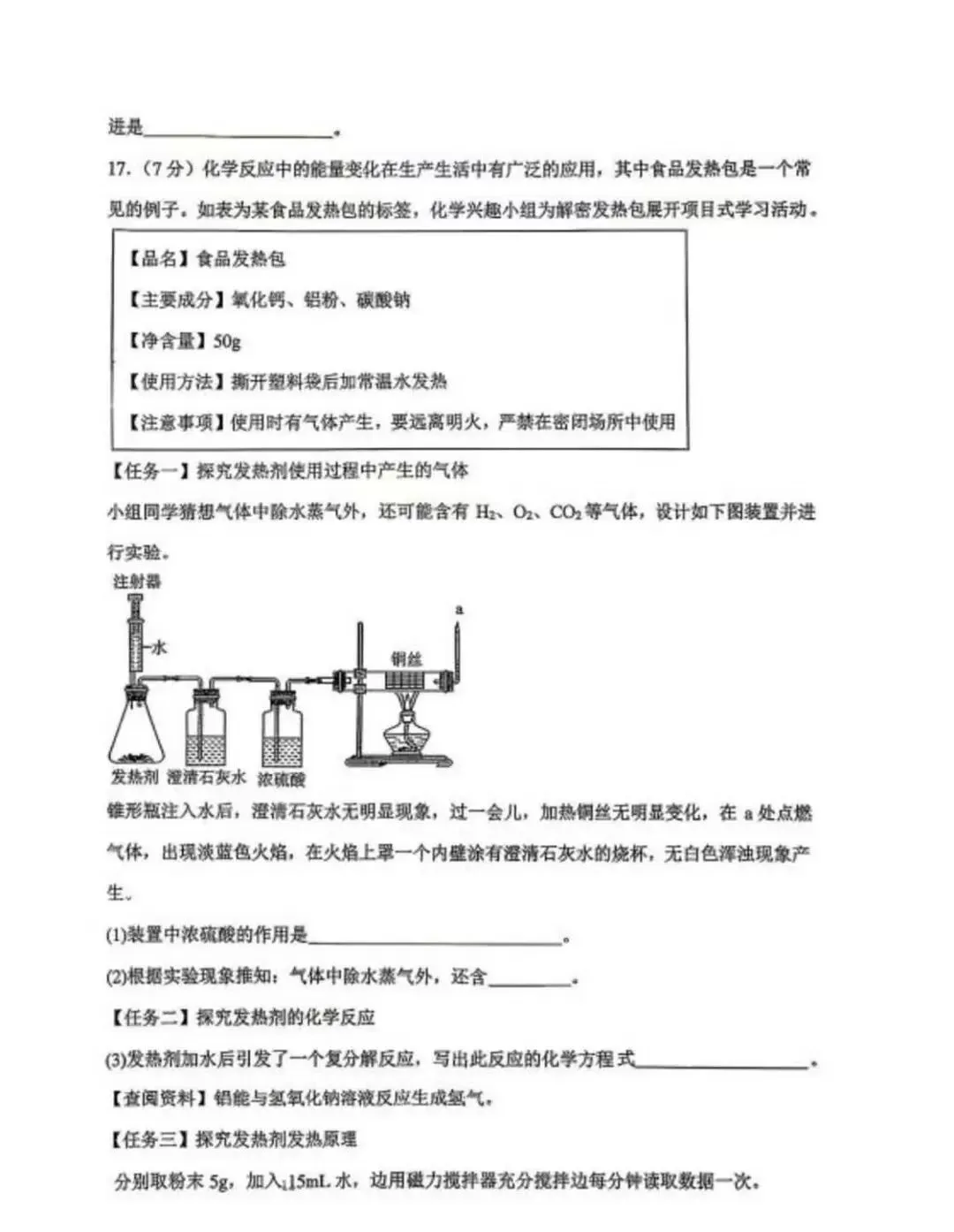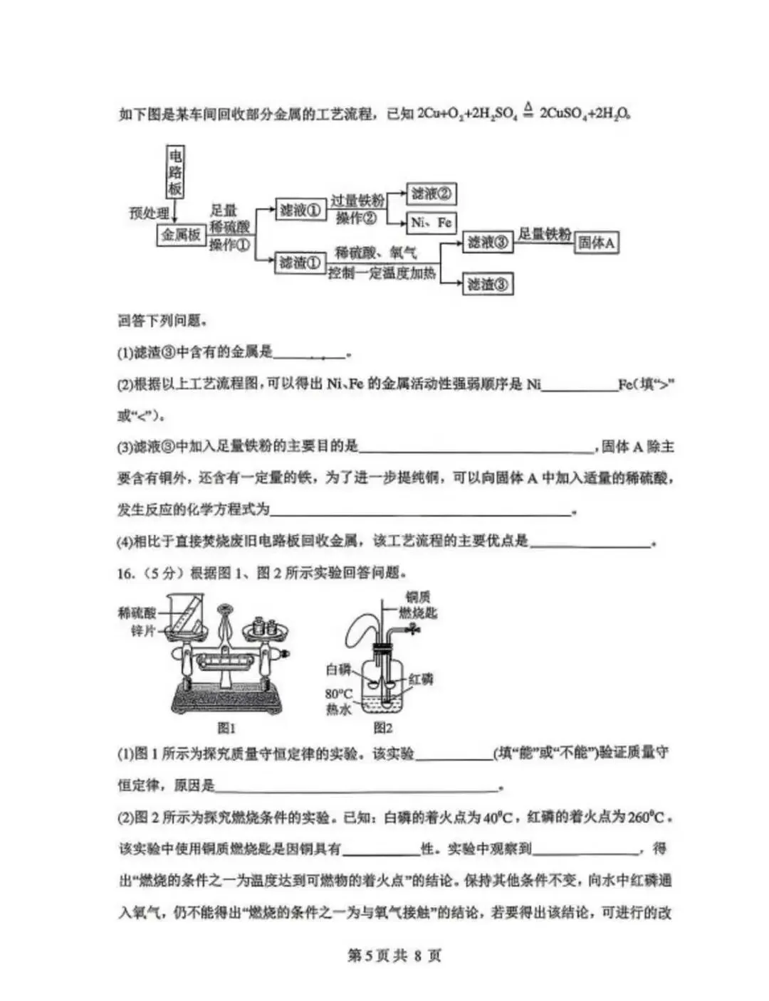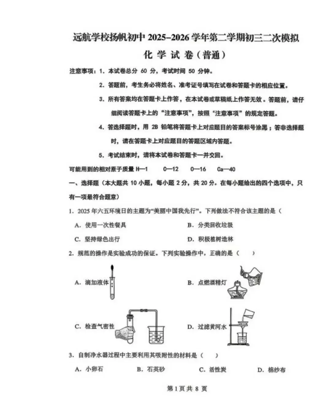 邯郸杨帆中学初三下册化学二模试卷—可打印