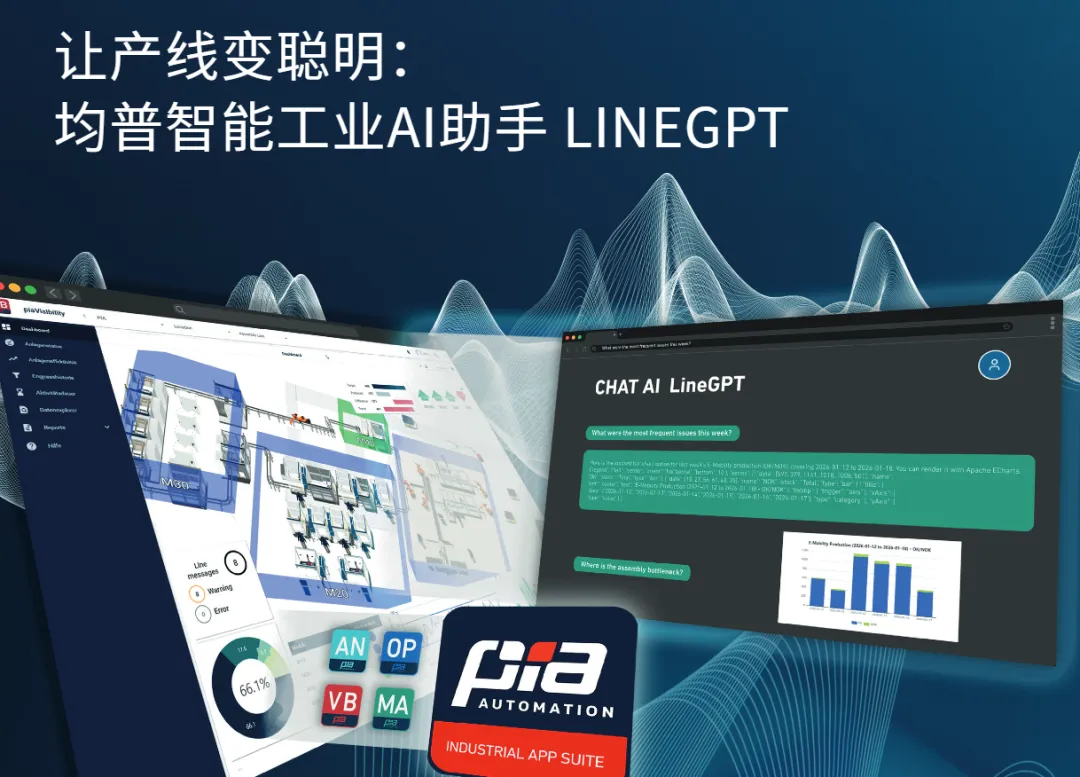只需一句提问,它便能理解您的意图,自动关联并分析来自PLC、MES、传感器的多源数据,精准定位瓶颈,甚至给出优化方案——这就是均普智能在PIA4.0战略下推出的工业AI助手LineGPT。作为piaIAS(PIA Industrial App Suite)的智能中枢,LineGPT重新定义了人机交互的边界:它将复杂的工业软件系统,转化为一个可通过自然语言直观交互的“核心生产力界面”。从此,优化产线不再意味着在多个软件间反复切换查询,而是如同咨询一位永不疲倦的领域专家,实现从“描述现象”到“获得专家建议”的直达。