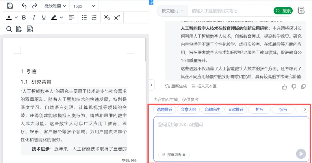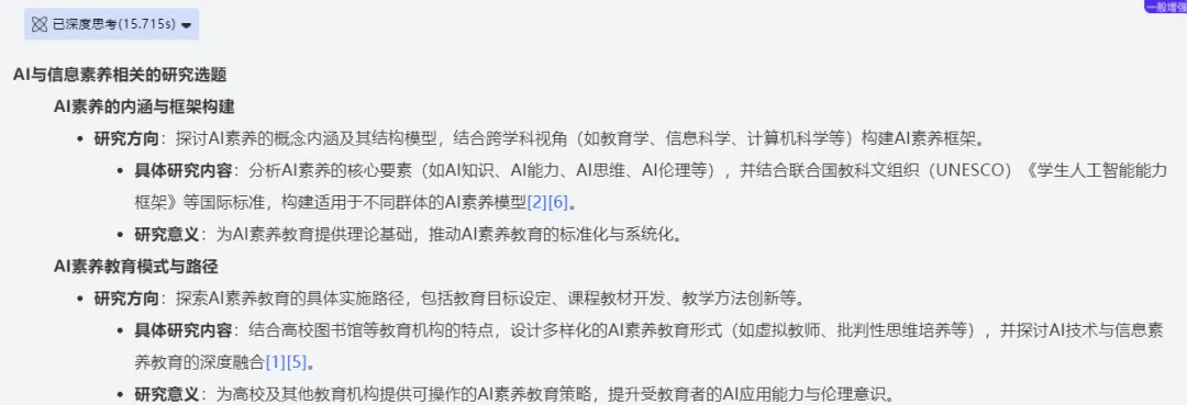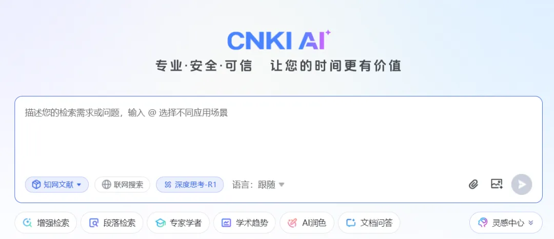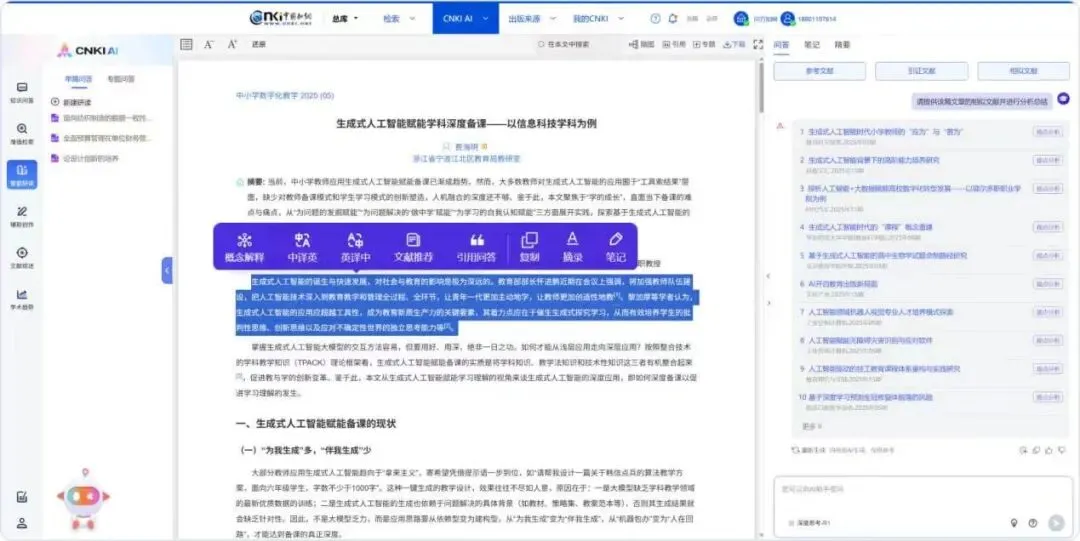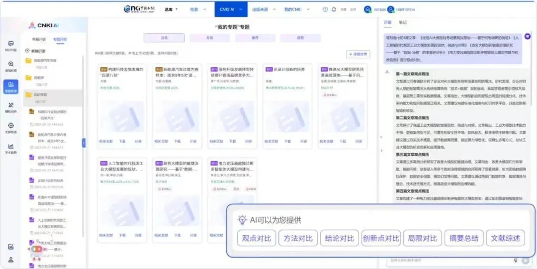 ➡ CNKI AI解法:输入要研究的内容(例如“AI与信息素养相关的研究选题”):多个创新选题加解析,直接打包!更有精准溯源,回答内容更专业、更可靠。