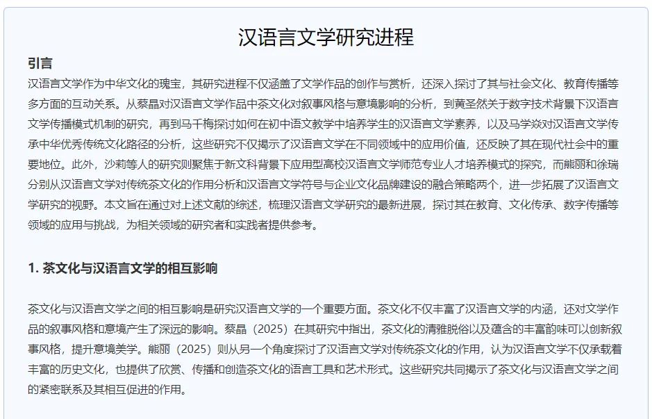 ➡ CNKI AI解法:输入“XX研究现状(比如: 汉语言文学研究进程)”,速览观点信息,掌握研究主题,智能整理文献,分析文献观点,整合不同观点分类,一键生成结构清晰、内容精练的千字综述,让文献调研变得轻松又高效,专业范儿十足!
