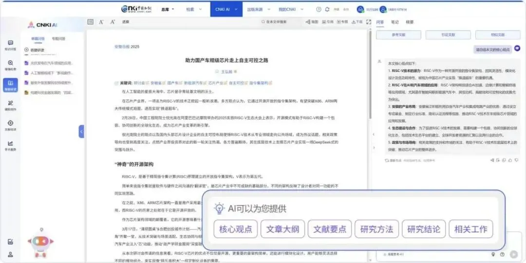 ➡ CNKI AI解法:智能研读,文章伴读、专题问答,助力梳理脉络、提炼精华,快速获取文献中的关键信息,知识吸收变得轻松高效,核心论点+关联论文精准打击!
