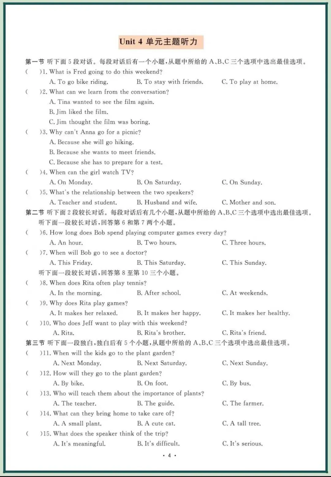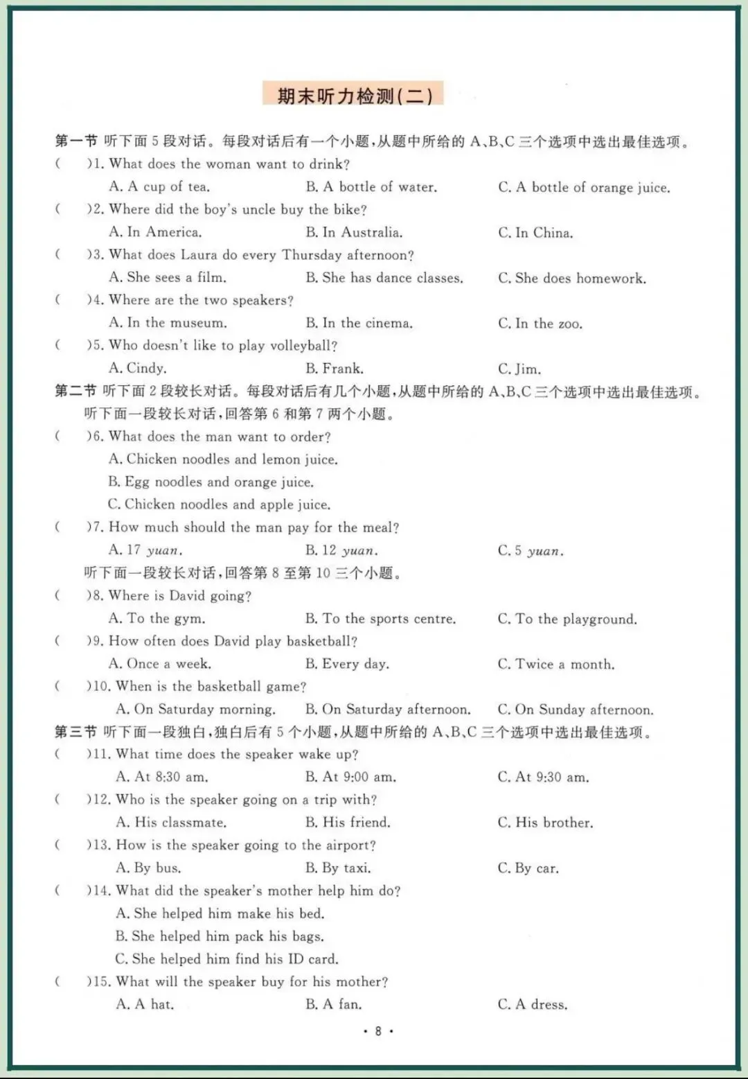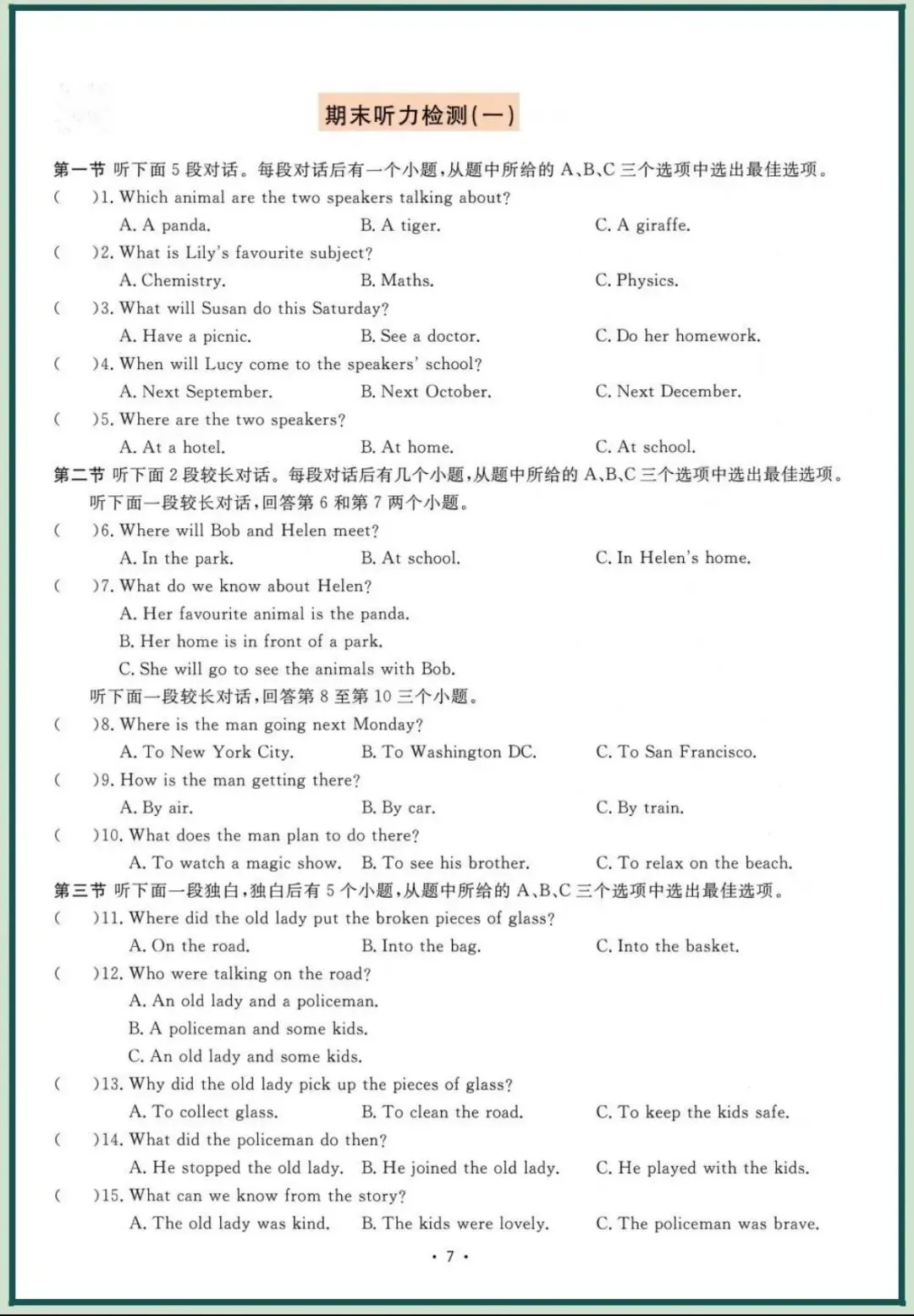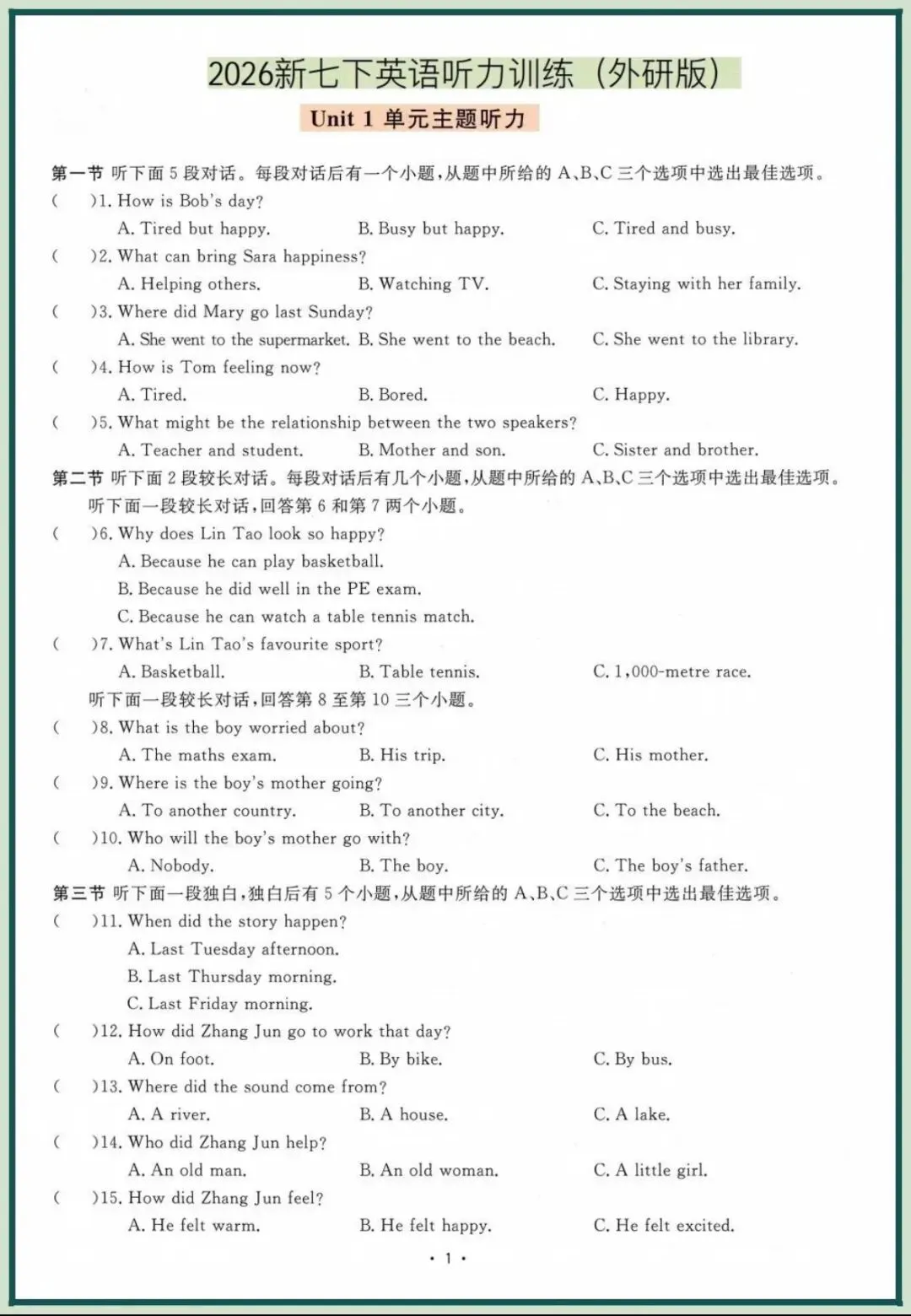 2026春新(外研版)七年级下册《英语》听力全套训练(单元+期中+期末)含听力音频,电子版可下载打印!
