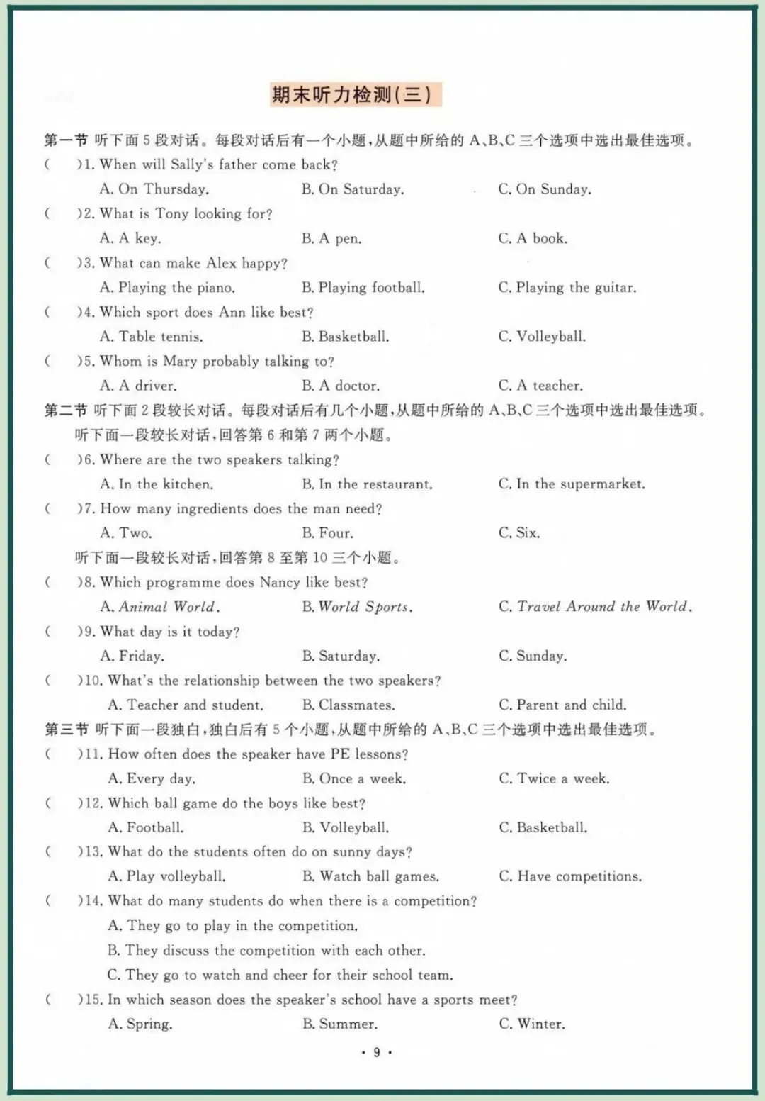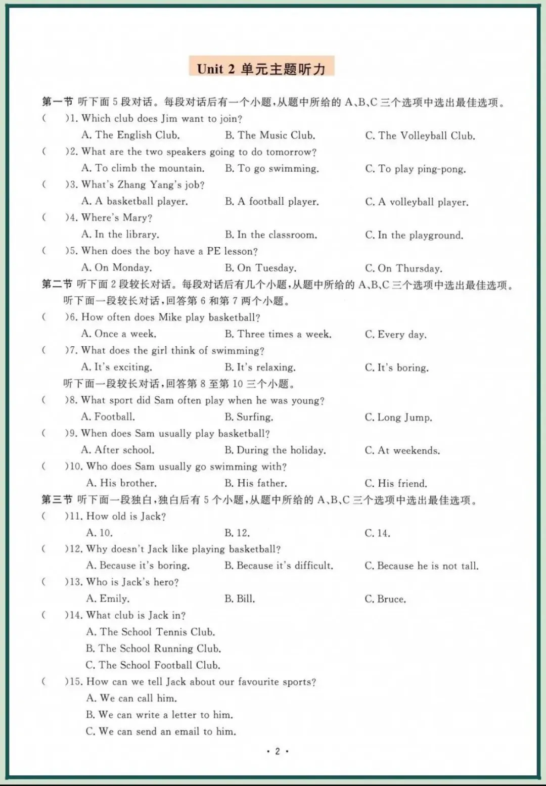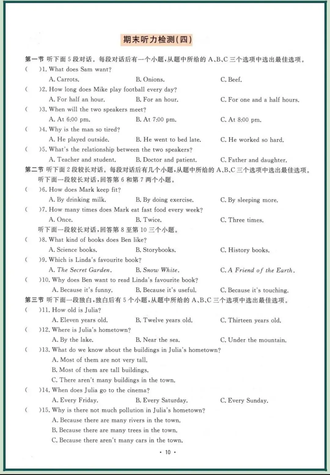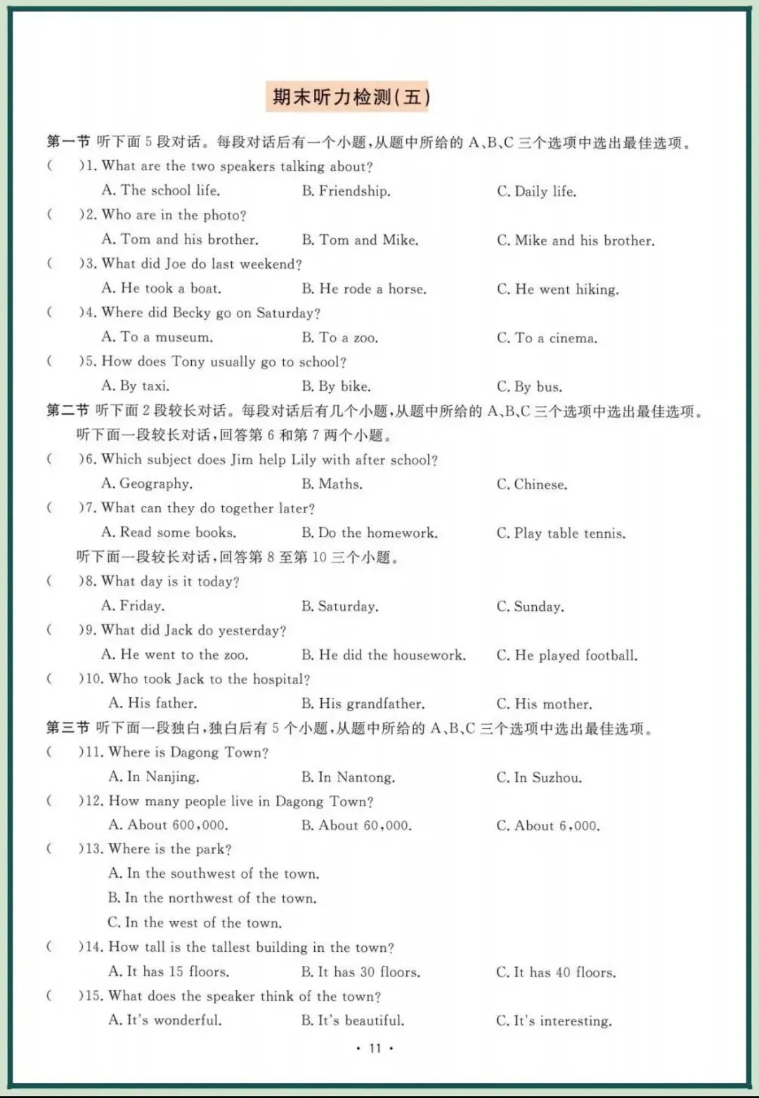 2026春新(外研版)七年级下册《英语》听力全套训练(单元+期中+期末)含听力音频,电子版可下载打印!