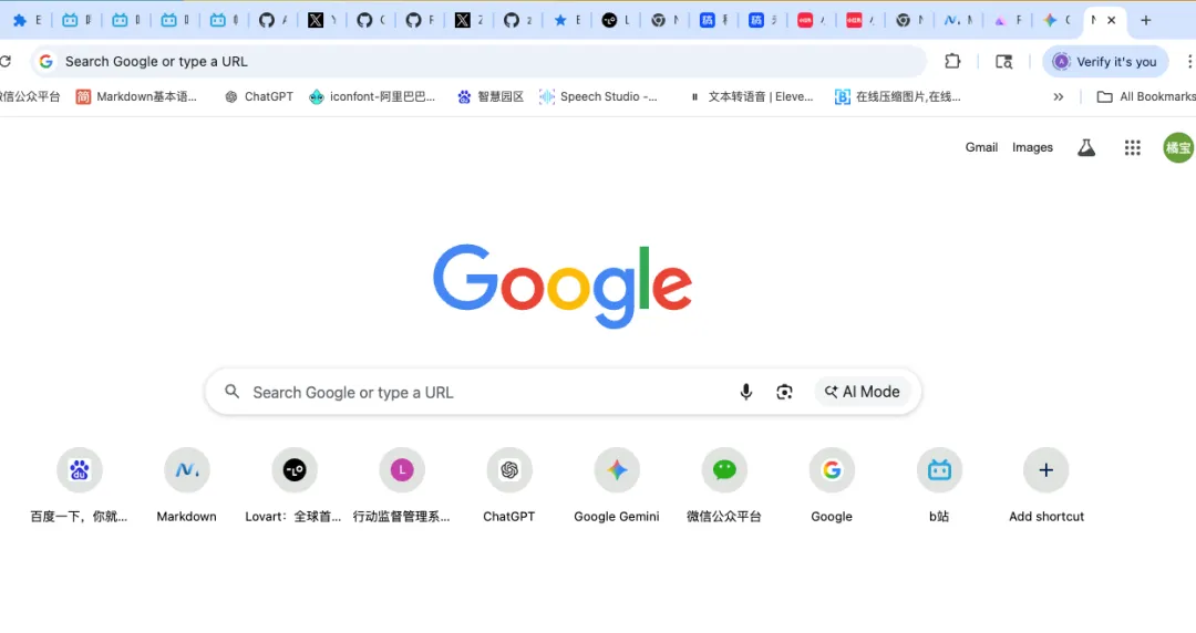 新开tab之后,浏览器自带的搜索框不见了。常用网址的快捷入口也没了,书签栏也消失了。