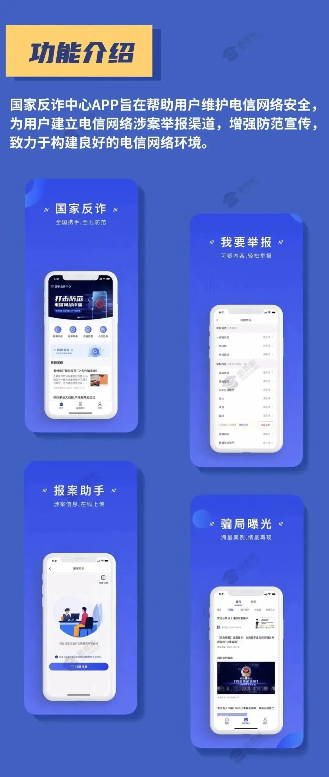 该APP集报案助手、线索举报、诈骗预警提示、反诈宣传等多种功能于一体,可以帮助用户预警诈骗信息、快速举报诈骗内容、高效提取电子证据、了解防骗技巧,切实提升用户的识骗防骗能力。