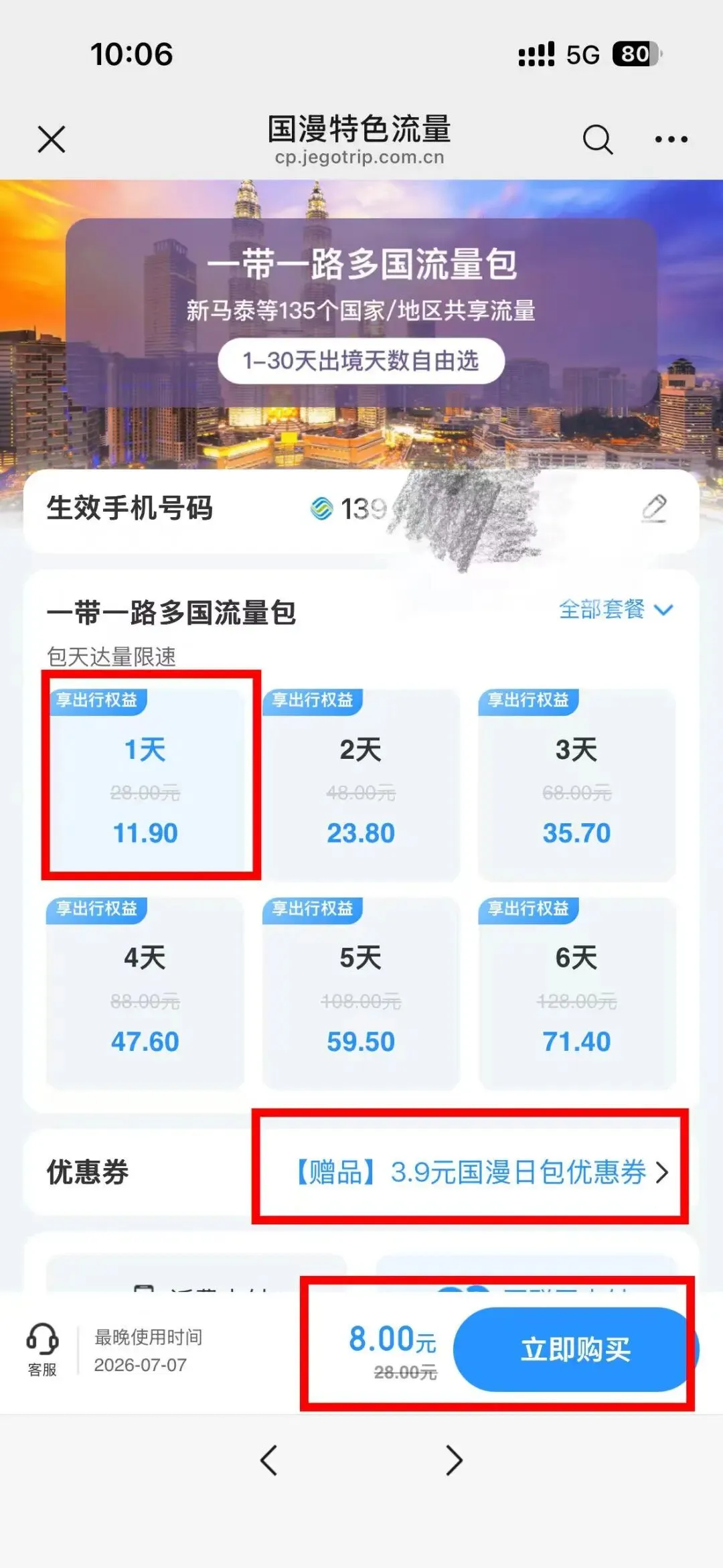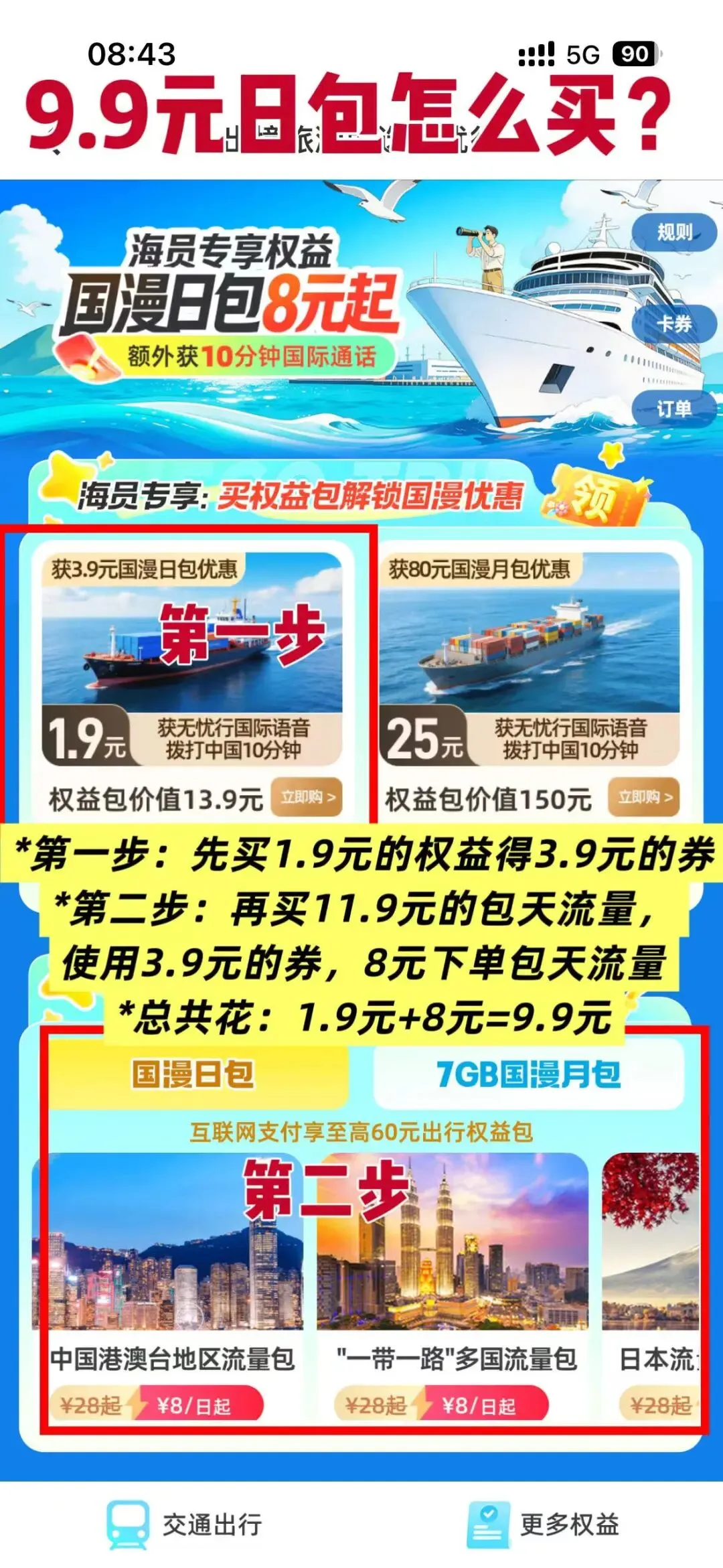 优惠一:日包9.9元/天