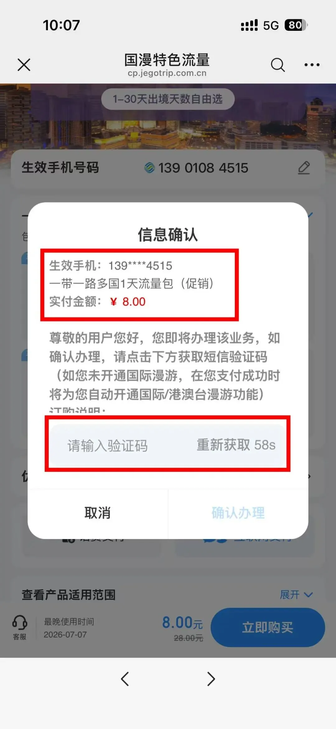 第二步:在买价值11.9元的流量包,下单时使用优惠券减3.9元,合8元下单成功