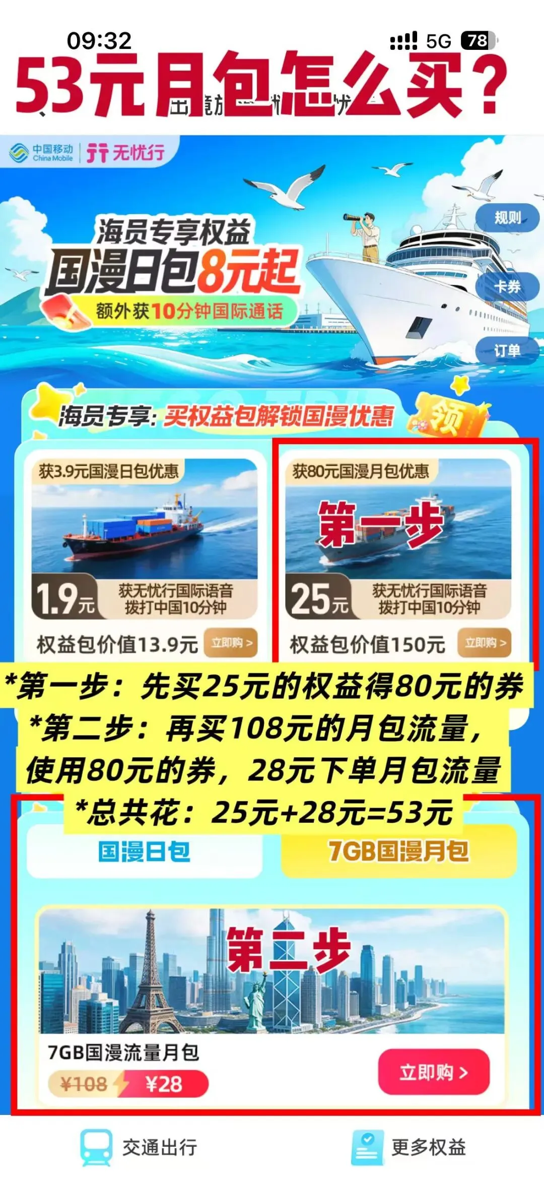 优惠二:月包53元/7G流量