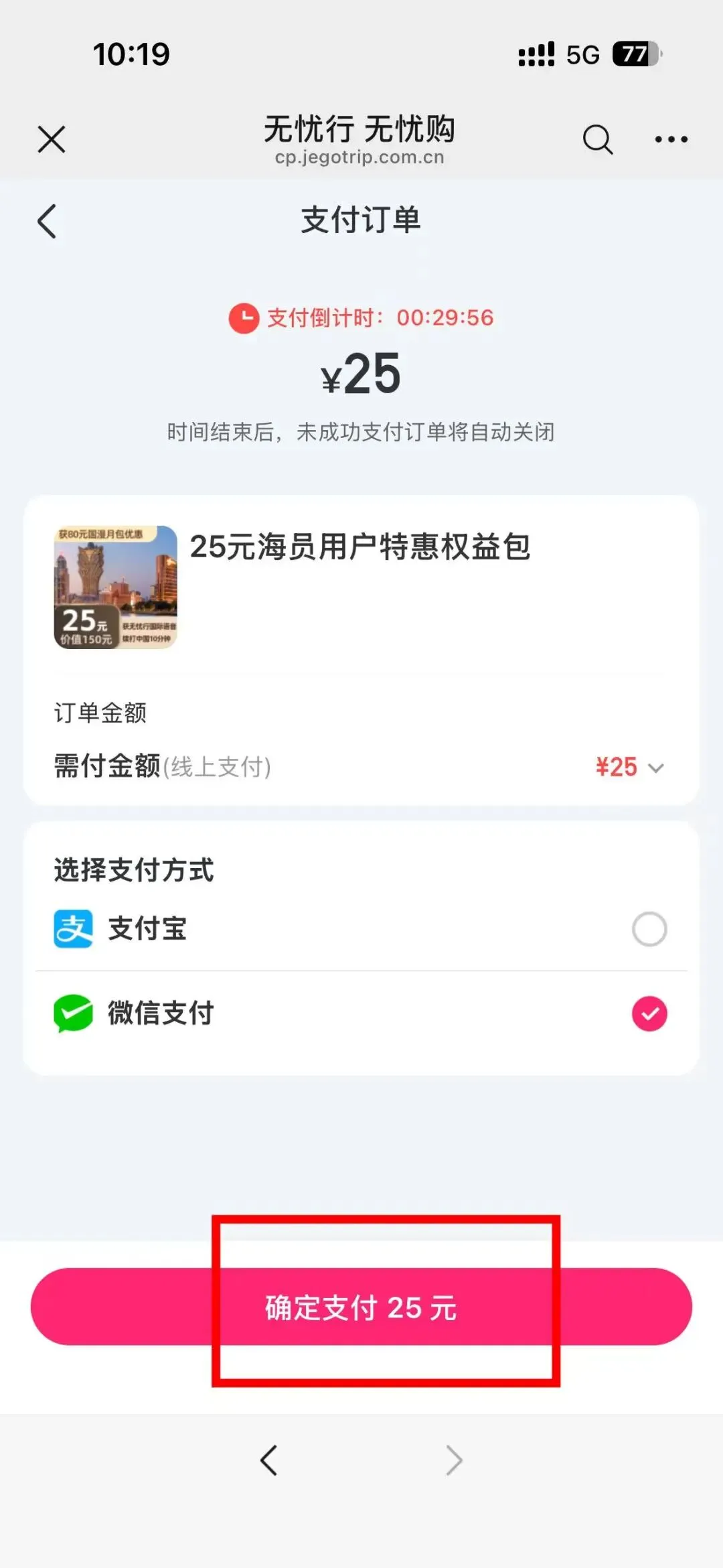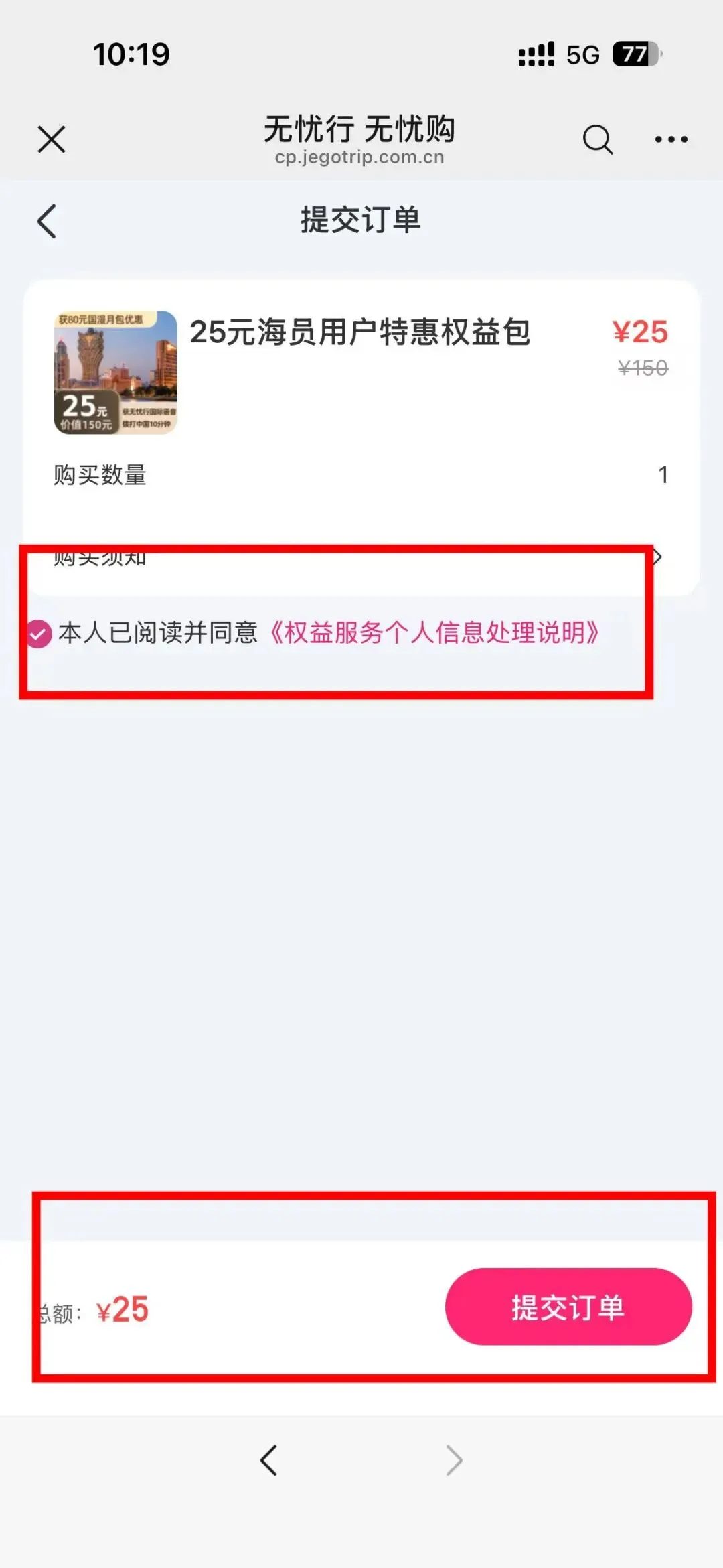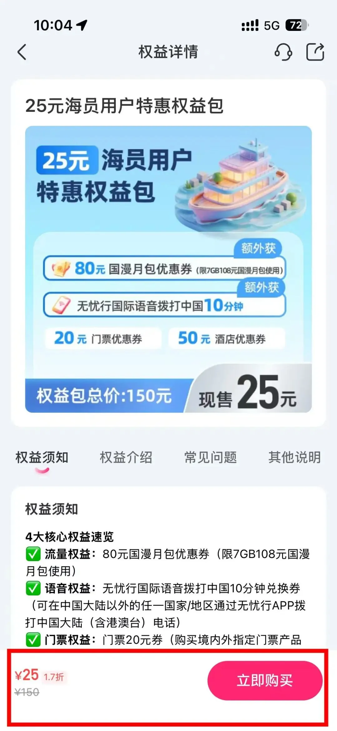 第一步:先买25元权益券(送80元月包优惠券)