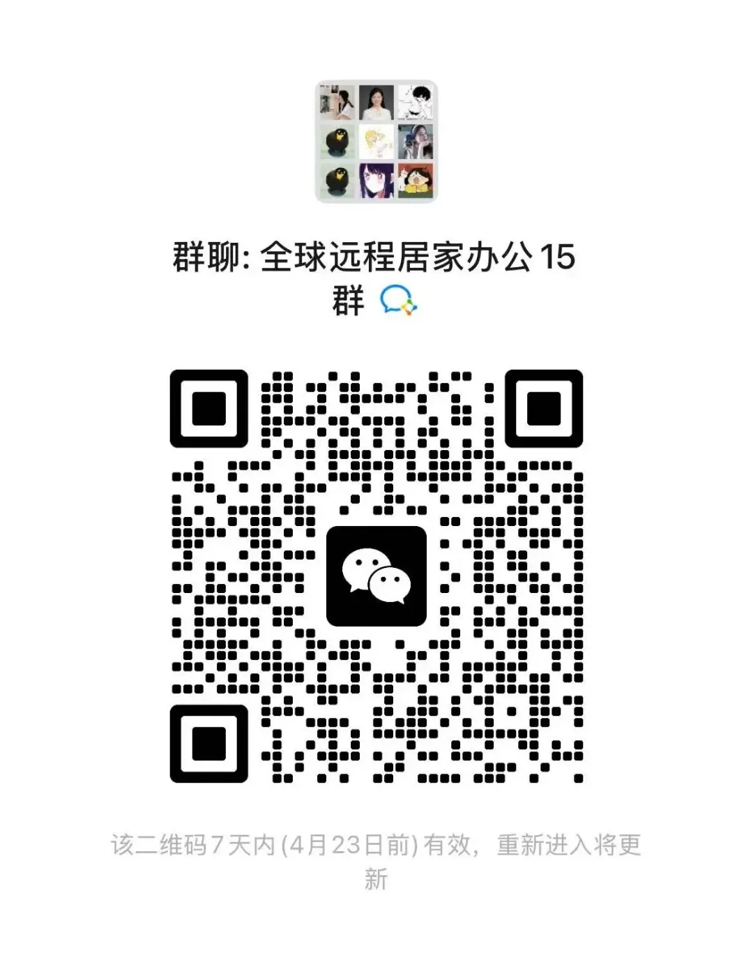 如果您对远程工作感兴趣,欢迎扫码加入咱们【全球远程居家办公群】!!