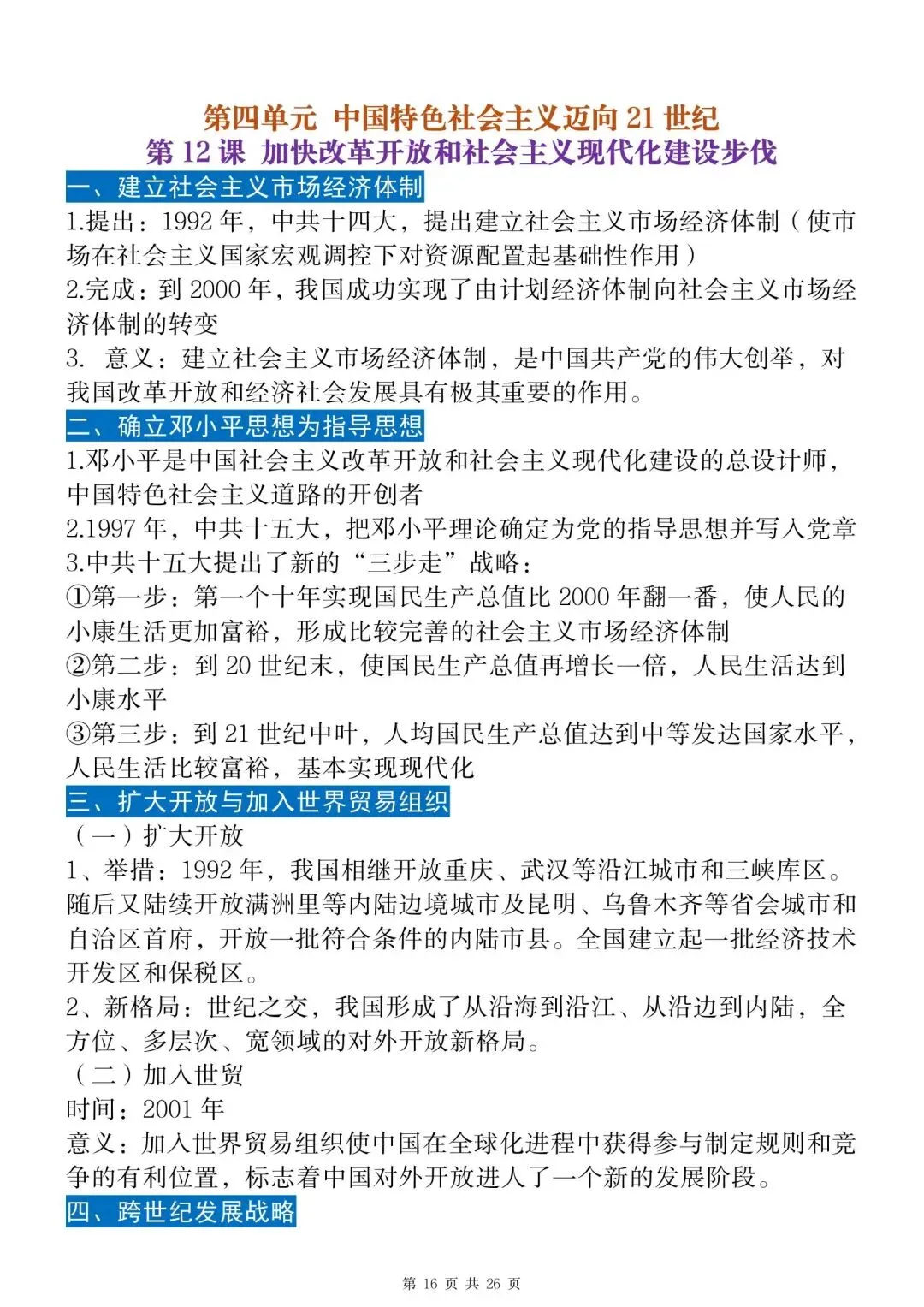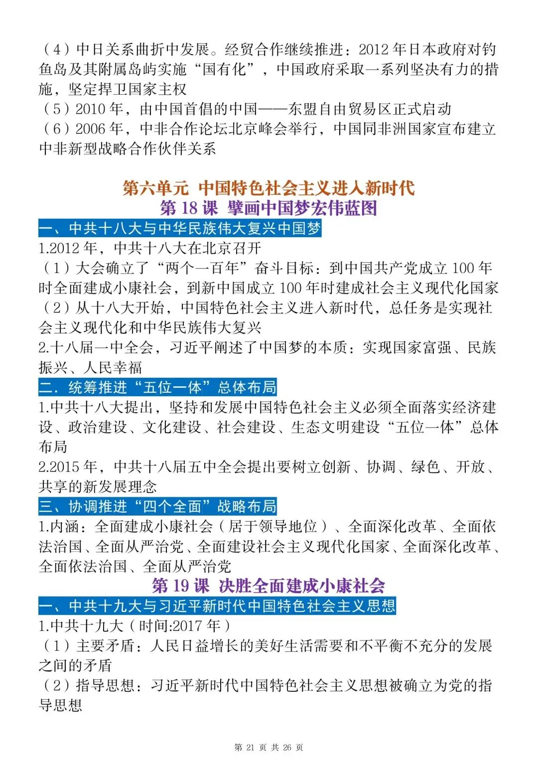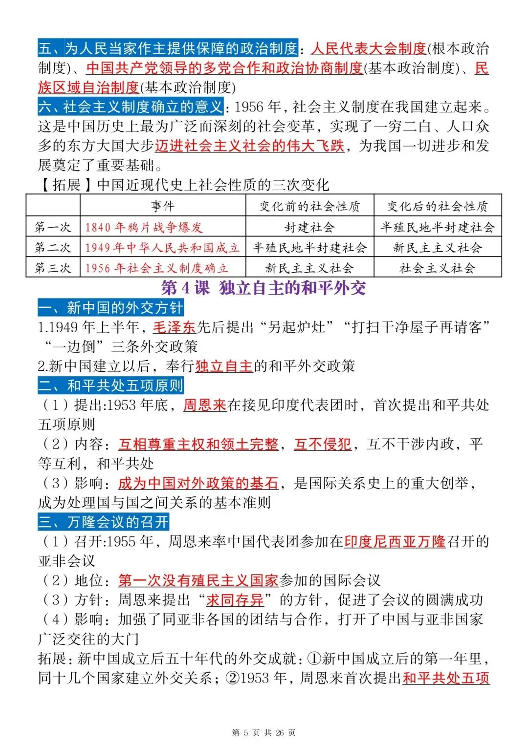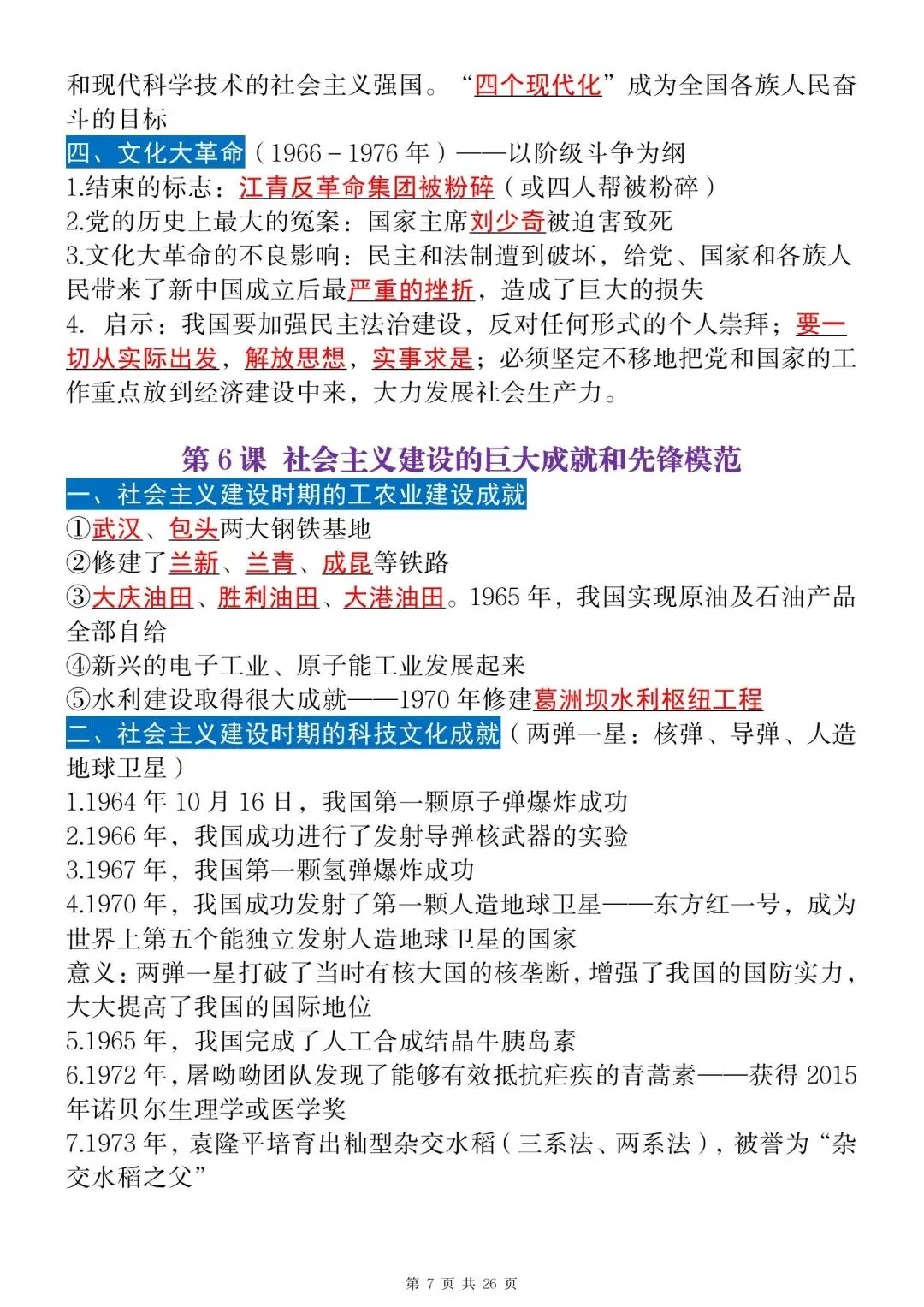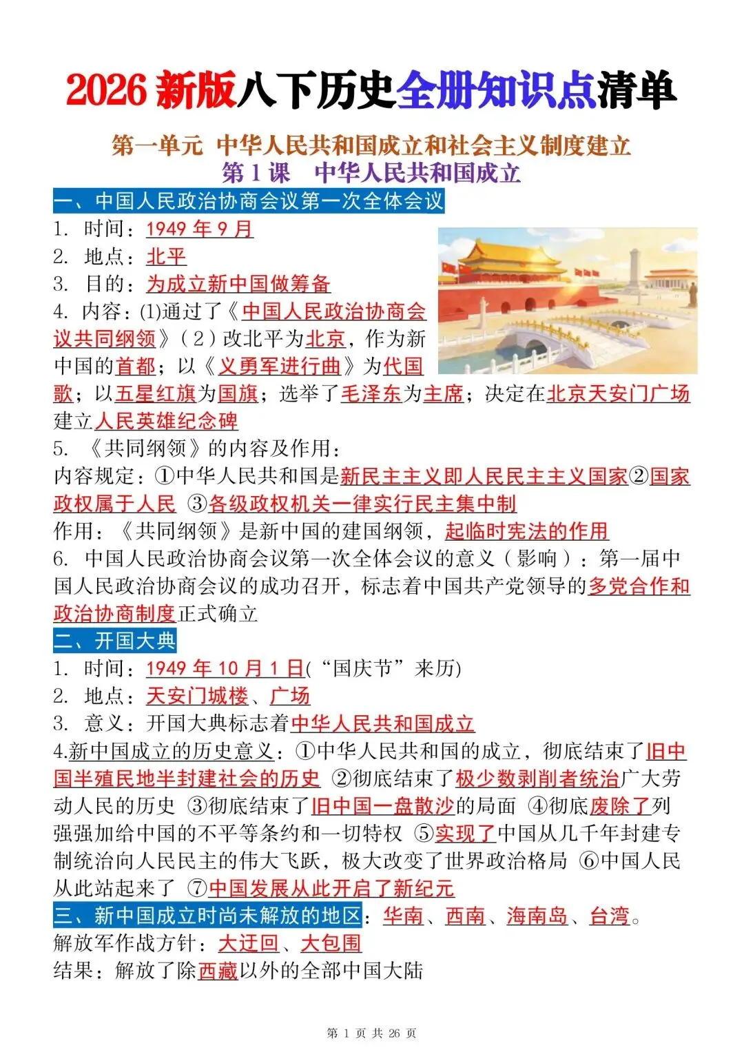 八下历史知识点总结,有完整电子版可打印,班里的学生都在用.