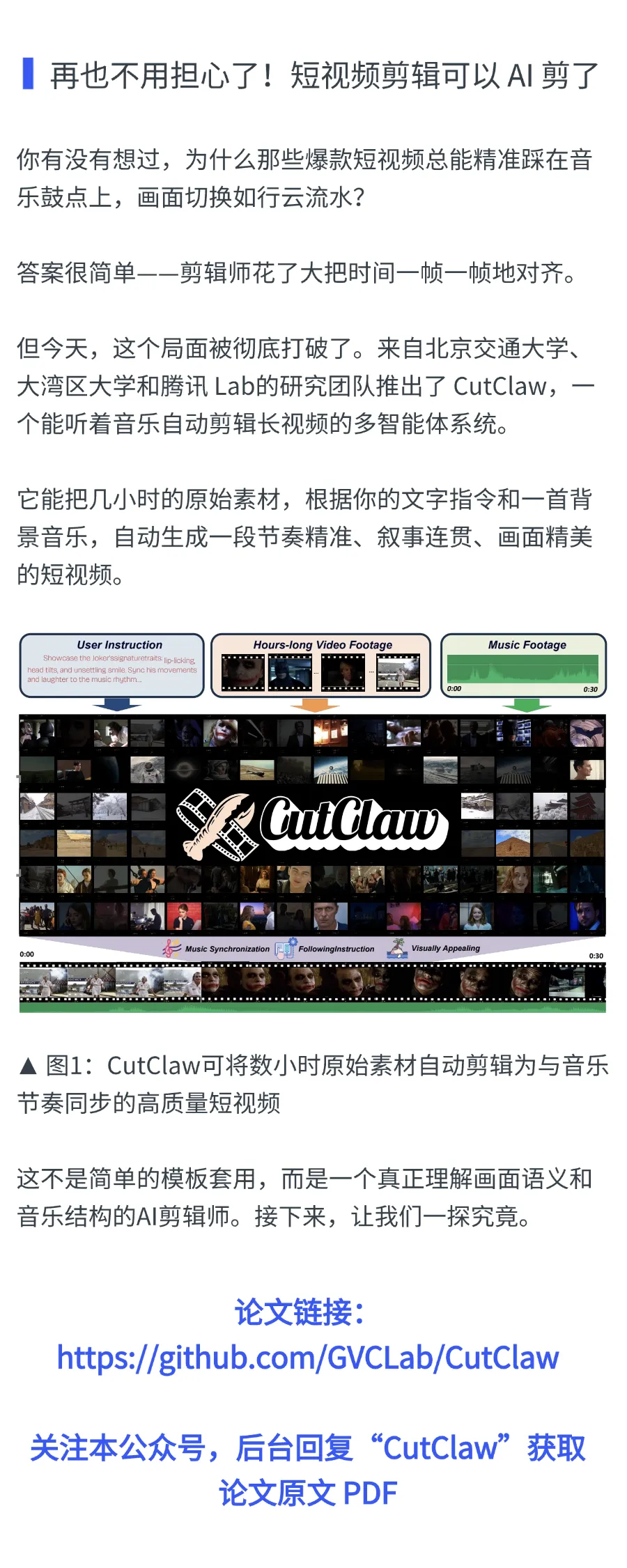 最新论文!AI 剪辑工具 CutClaw 已开源,刷新 SOTA!