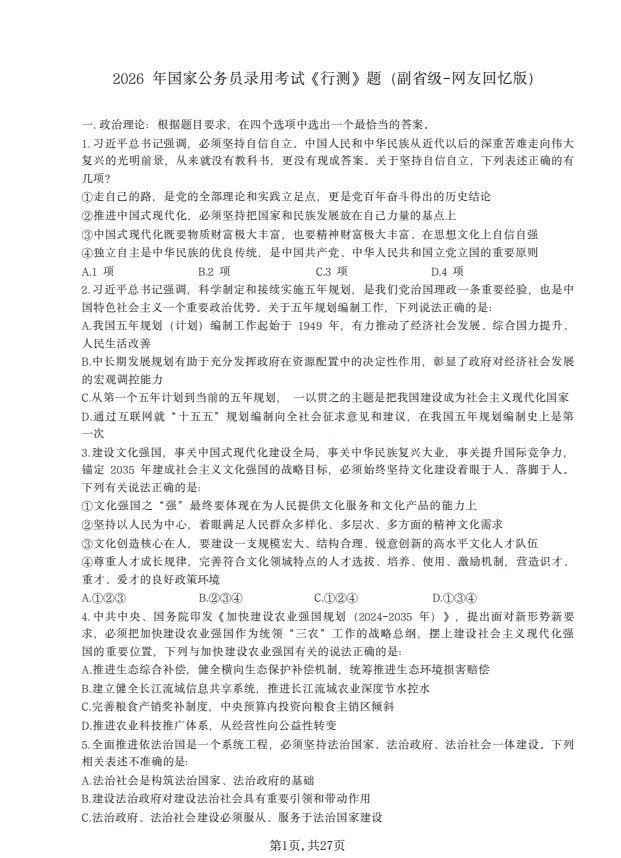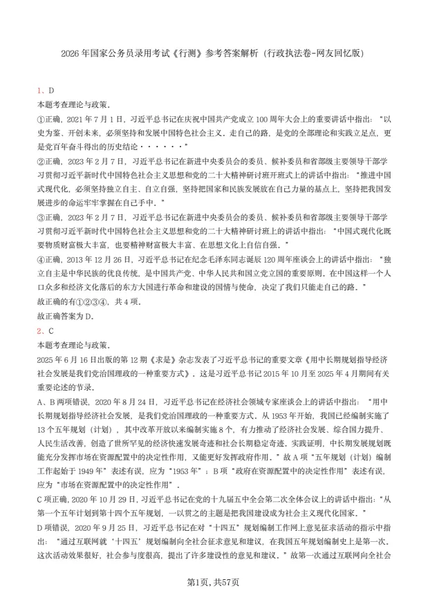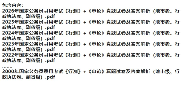 【最新版】国考《行测+申论》历年真题及答案解析PDF电子版(2000-2026年)【免费下载】!!!