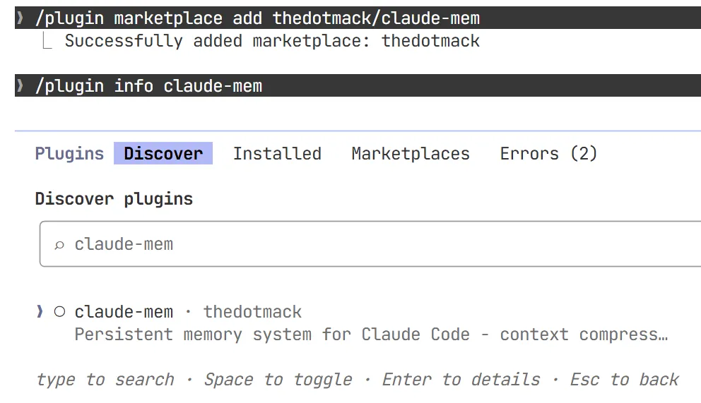 /plugin install claude-mem