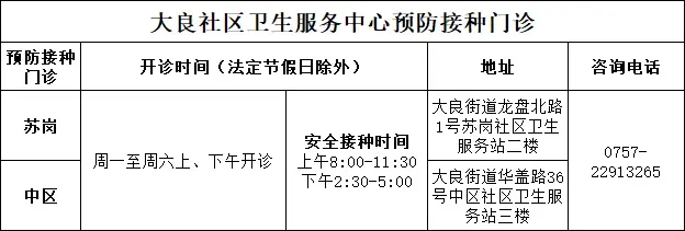 ▲大良街道预防接种门诊开诊信息