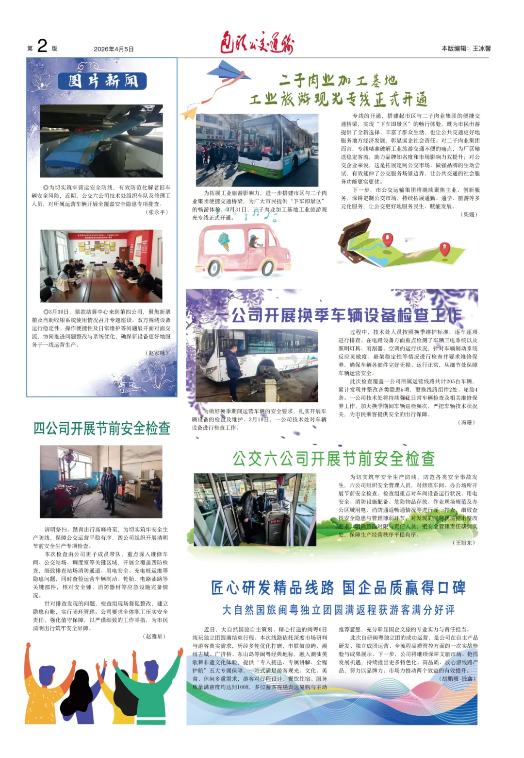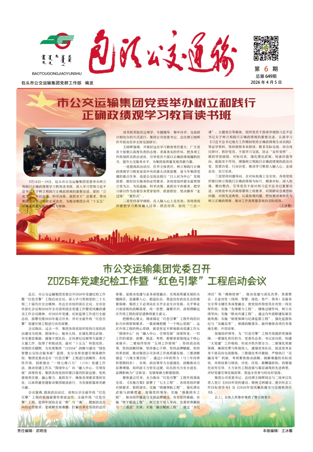 【指尖阅读】包头公交运输(电子版)第6期 总第649期 2026年4月5日 包头公交运输 (电子版) 第6期 总第649期 2026年4月5日 本 期 内 容 – 左右滑动 查看更多 – (编辑:高榕那;审校:王冰馨;审核:武明佳 )