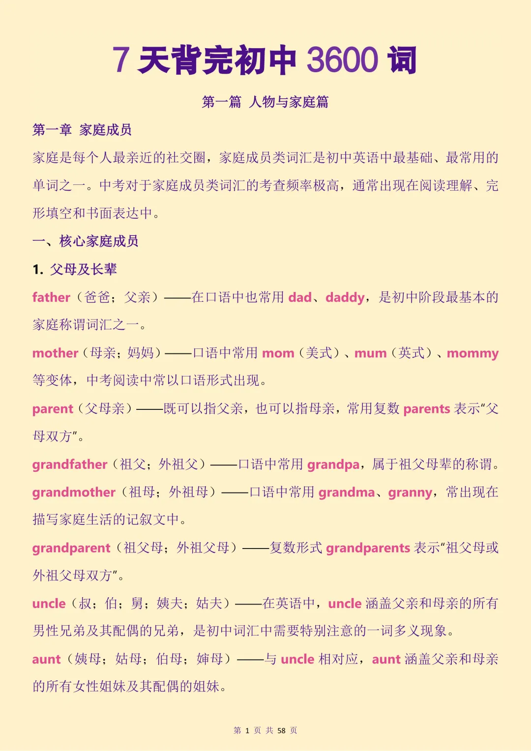 今天给大家整理了中考必备的【7天背完初中3600词】,覆盖 初高中 篇实用短文、全场景话题,既能积累词汇又能学习句式,不管题目如何变式,都能精准运用,轻松拿下高分!