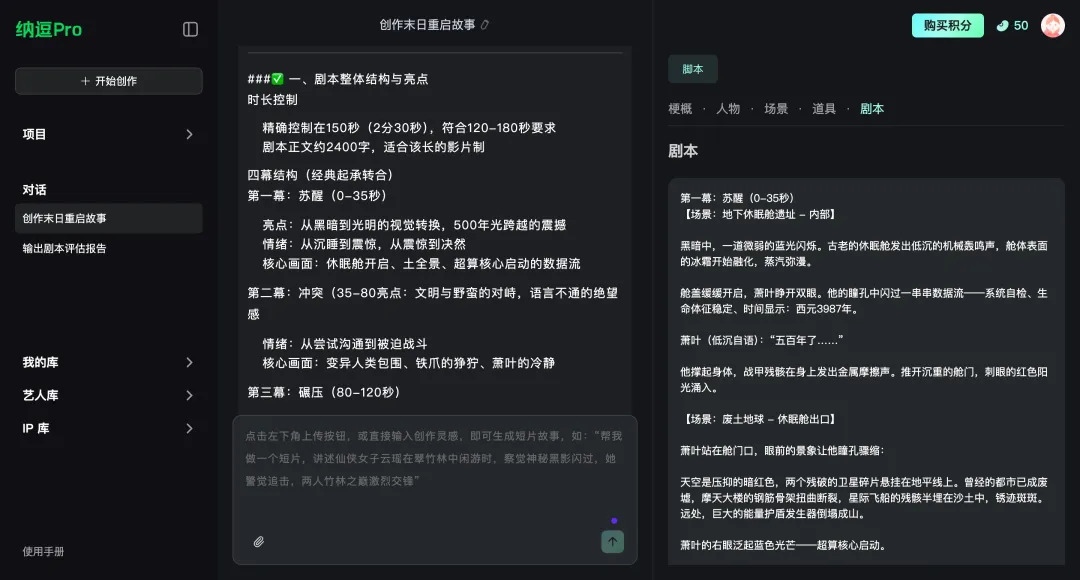 纳逗PRO是爱奇艺家的产品,整体还是适合做短剧的,从各方评价来说,还有一些小的问题,比如前后镜头的一致性问题。