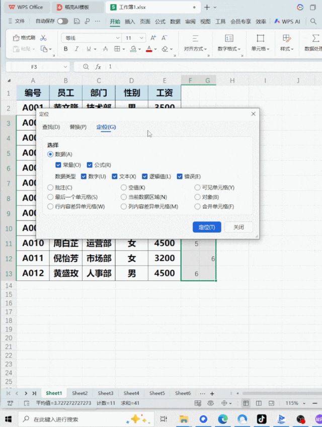 接着按ctrl加G打开定位,定位条件勾选空值,点定位,