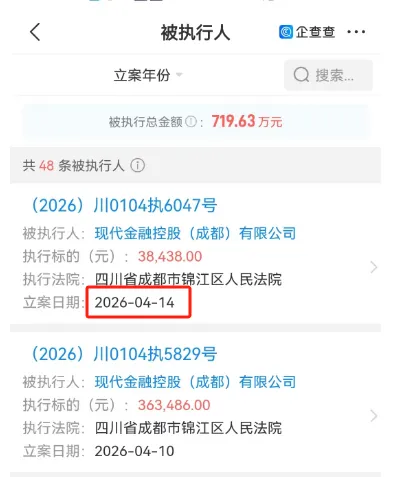 前2个月,人民法院依据(2026)川 0104 执 959 号协助执行通知书,对现代金融控股(成都)有限公司(下称 “现代金控”)相关事项作出司法涤除,为该公司法定代表人于克菊办理执行董事职务涤除手续