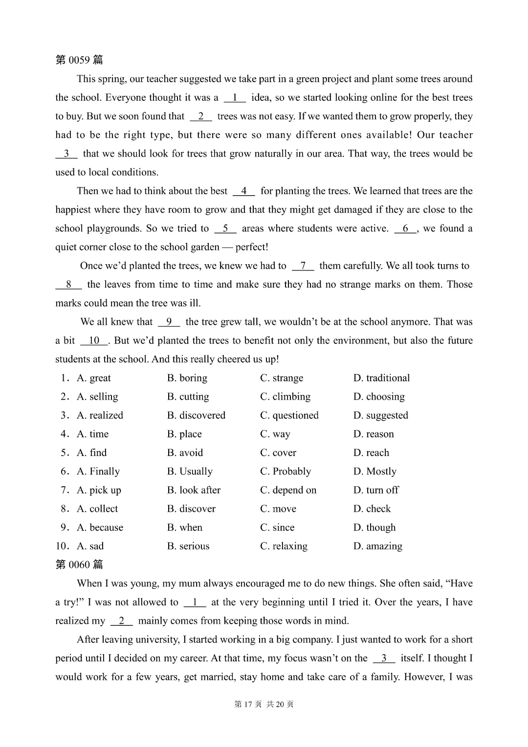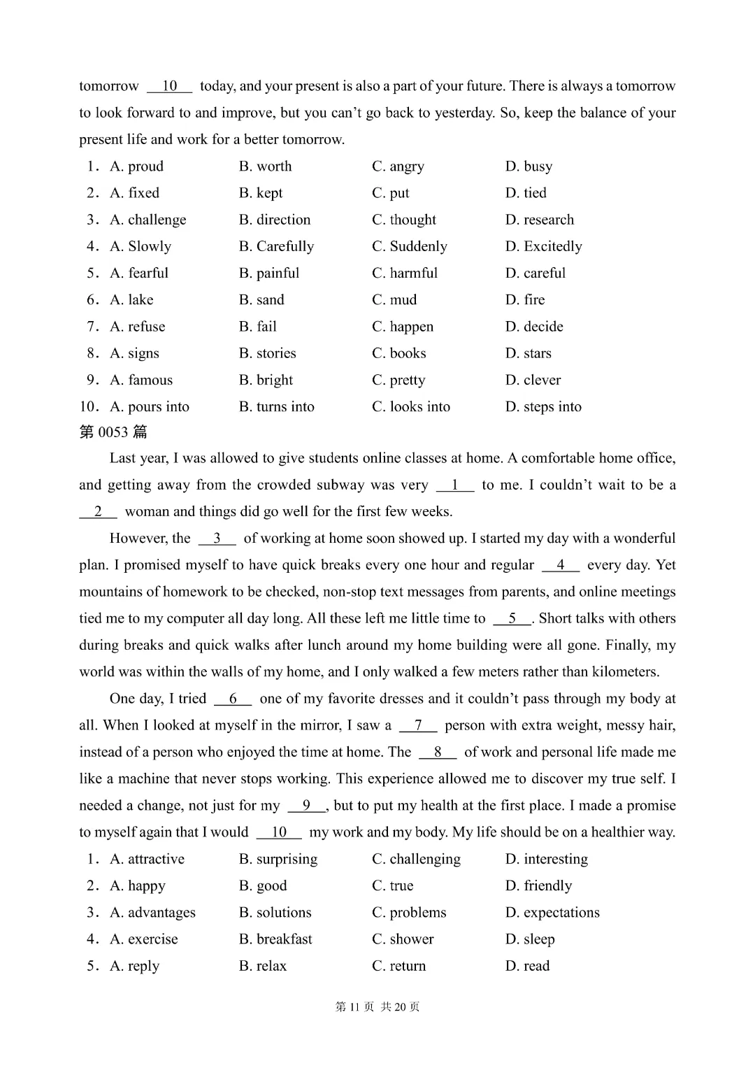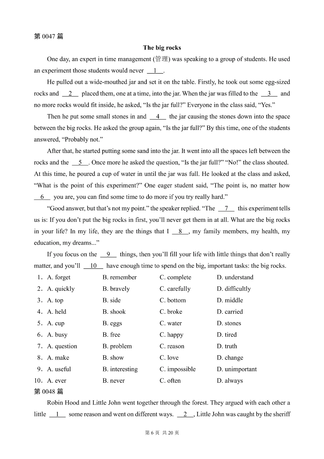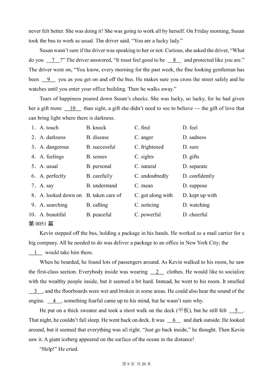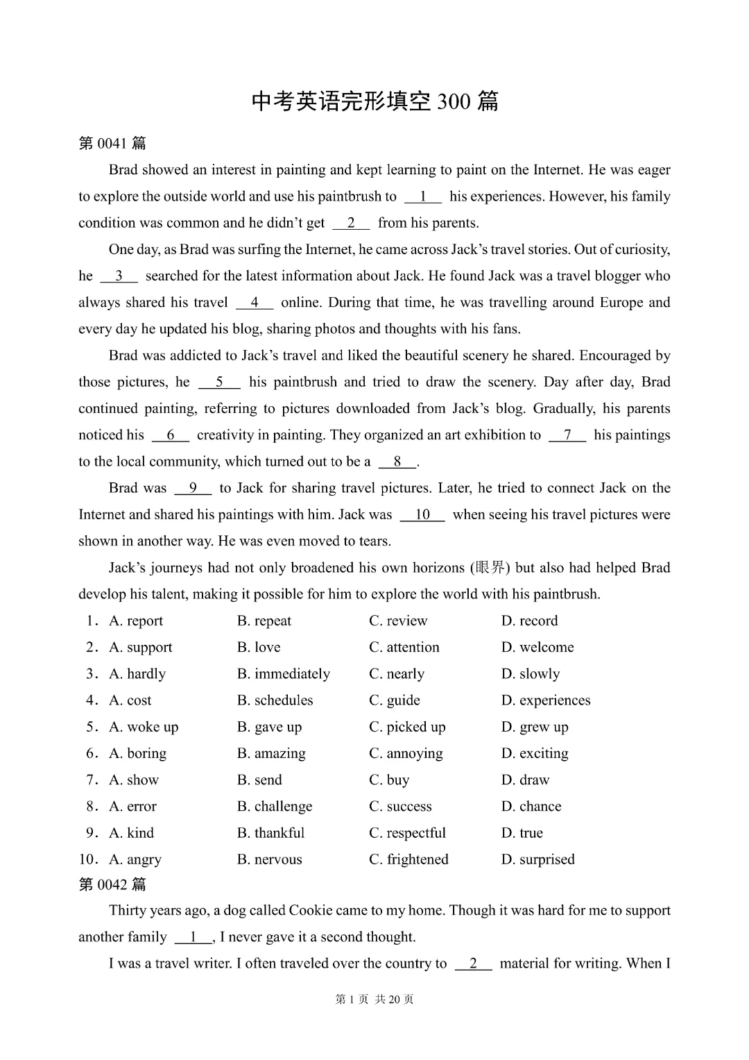 今日给大家分享的是:【2026春新版九年级下册英语通用版】中考英语《完形填空300篇之41-80篇》带答案|完整高清电子版可打印