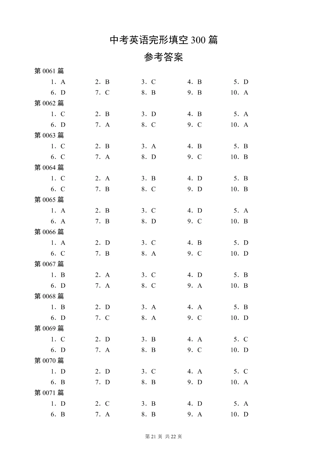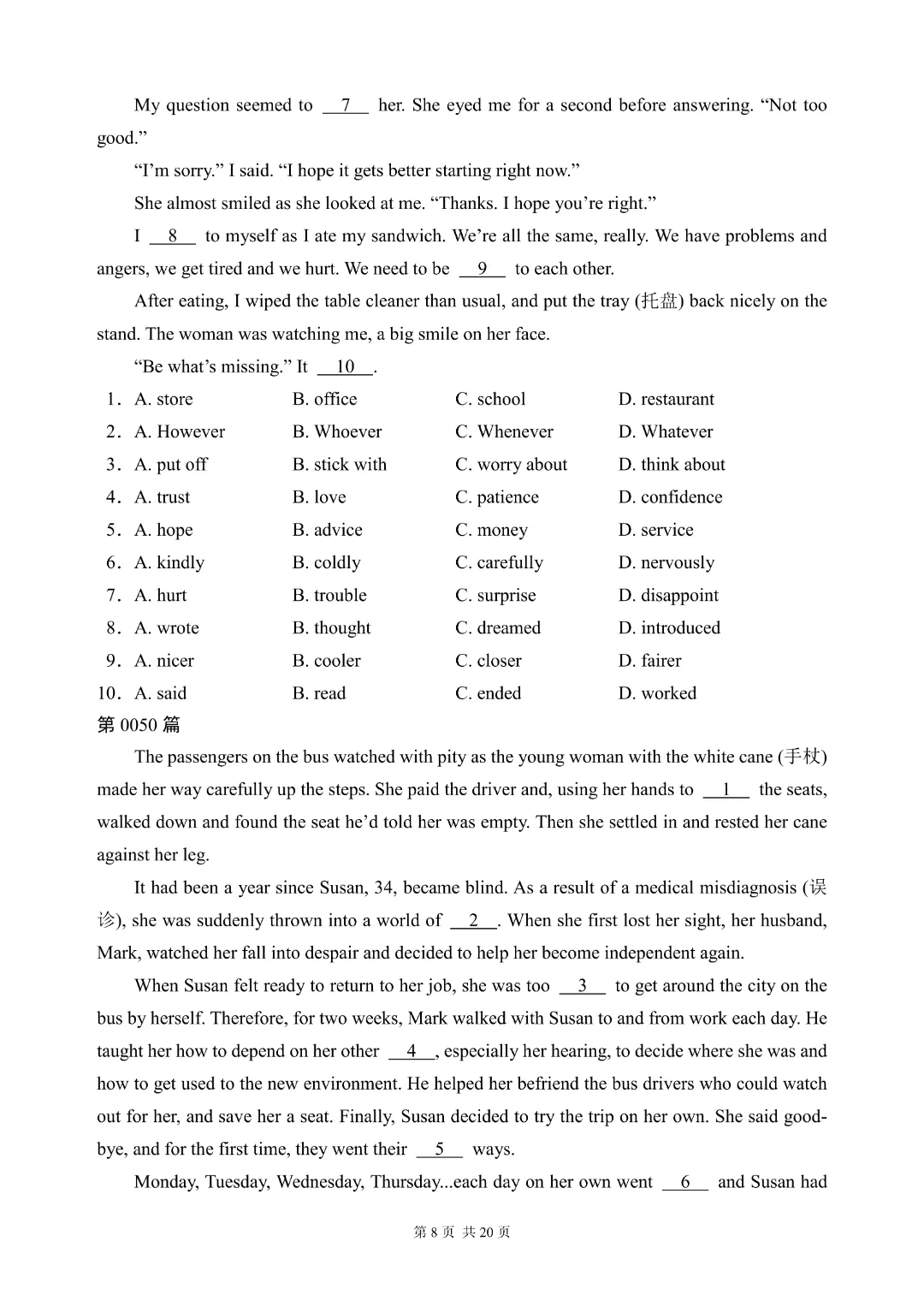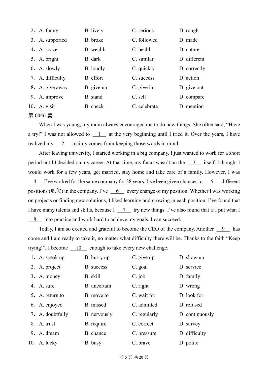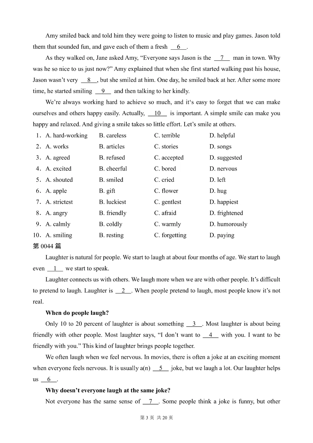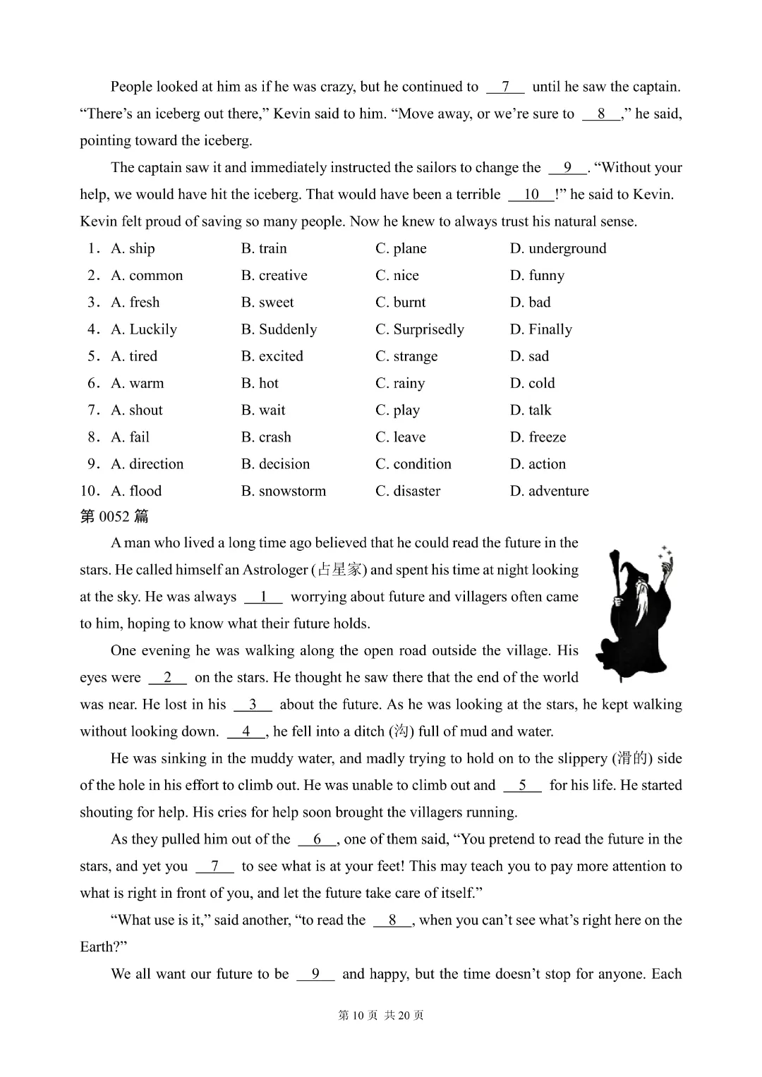 今日给大家分享的是:【2026春新版九年级下册英语通用版】中考英语《完形填空300篇之41-80篇》带答案|完整高清电子版可打印