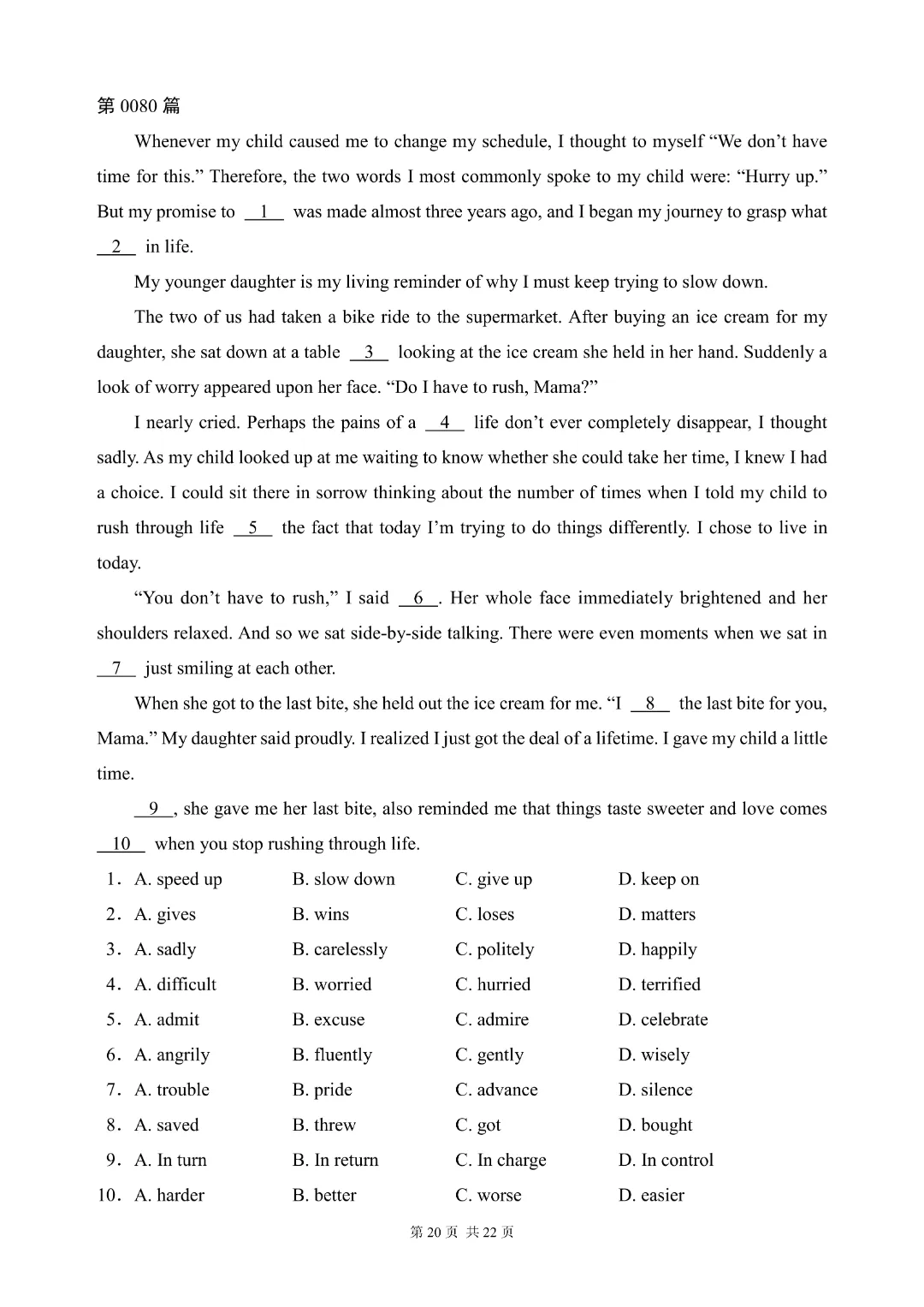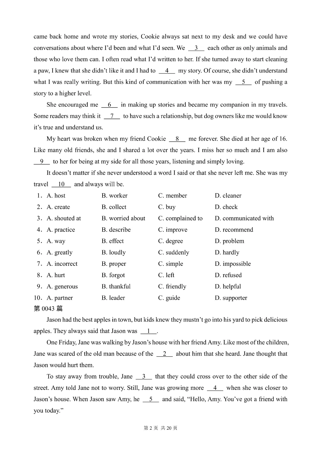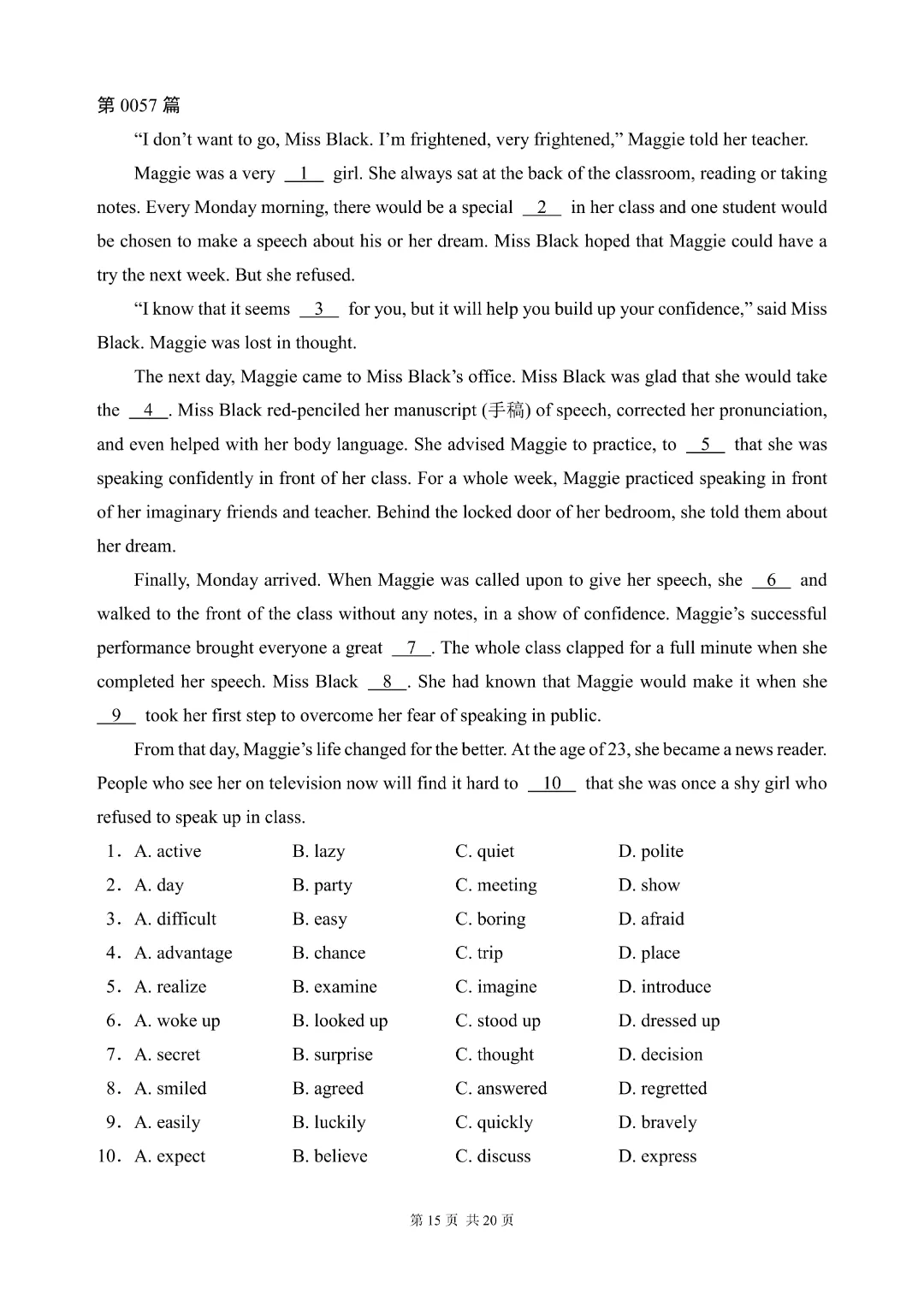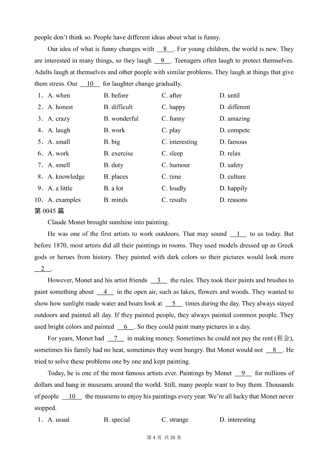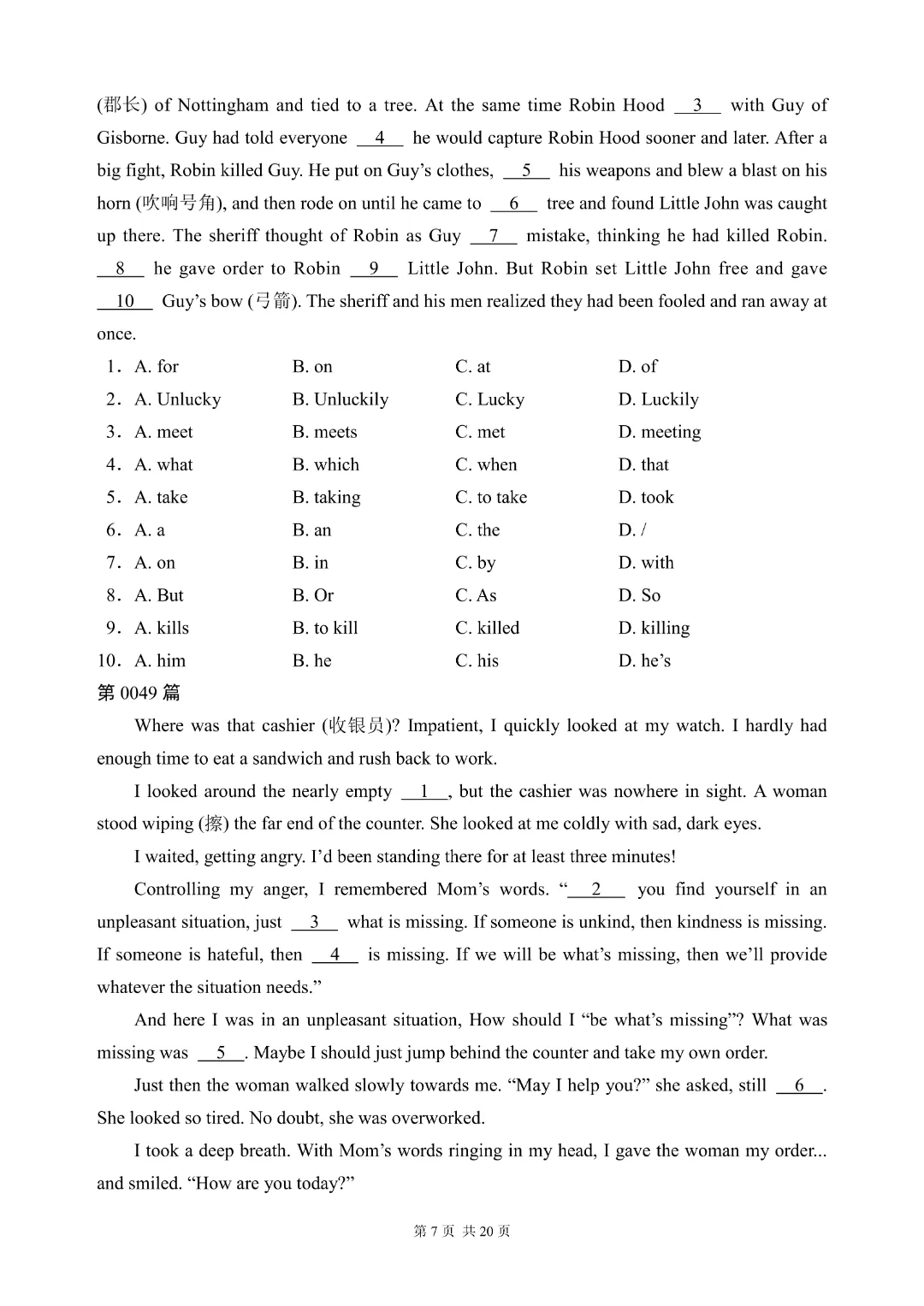 今日给大家分享的是:【2026春新版九年级下册英语通用版】中考英语《完形填空300篇之41-80篇》带答案|完整高清电子版可打印