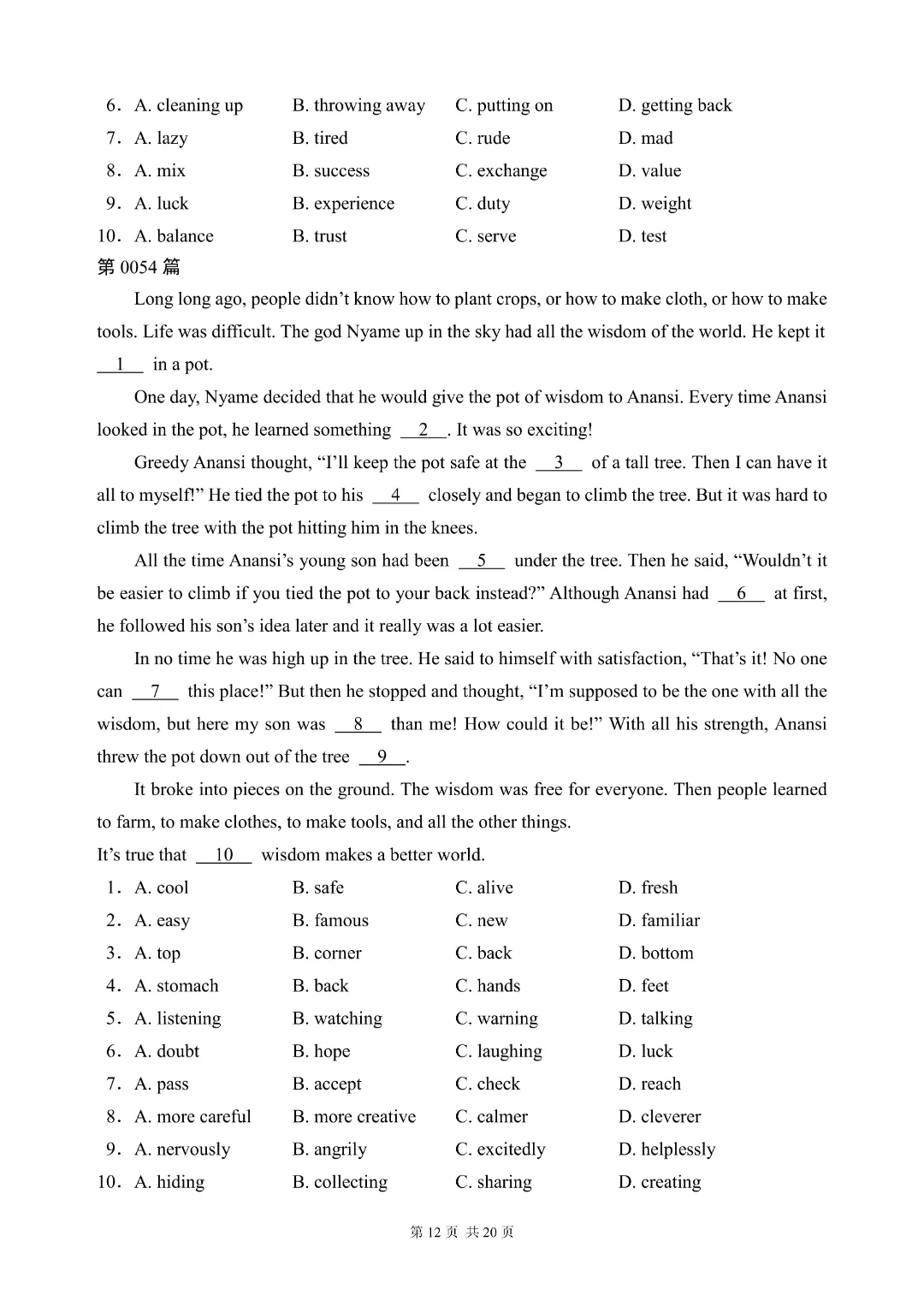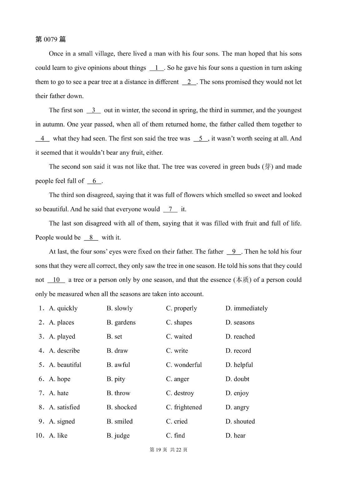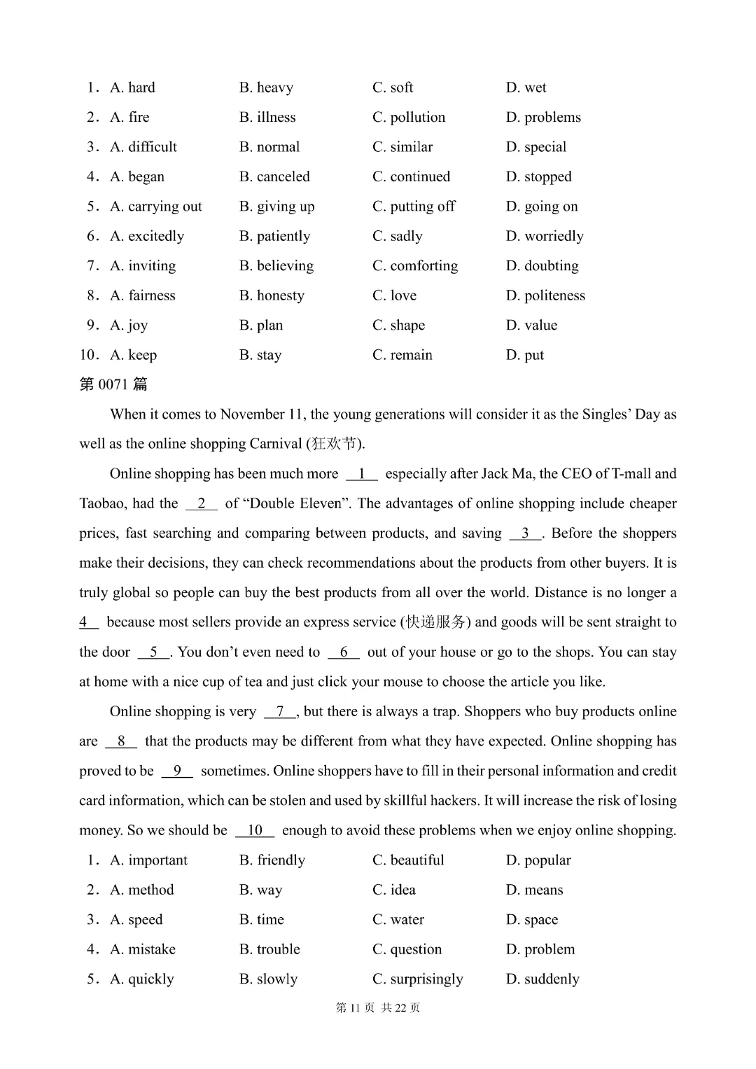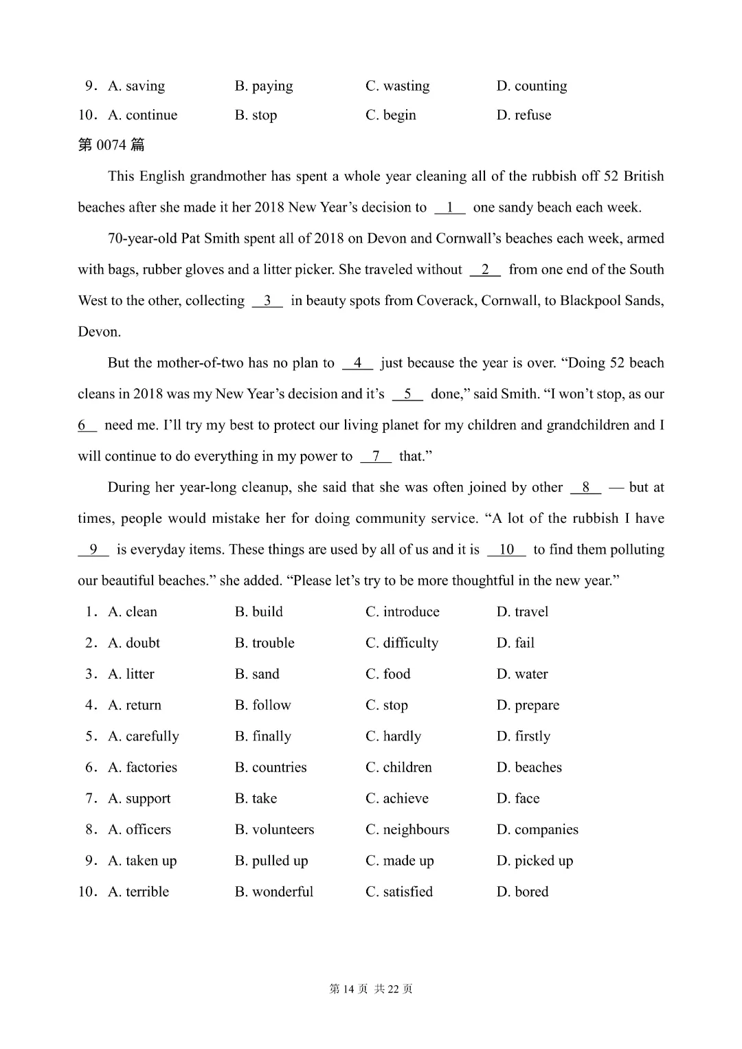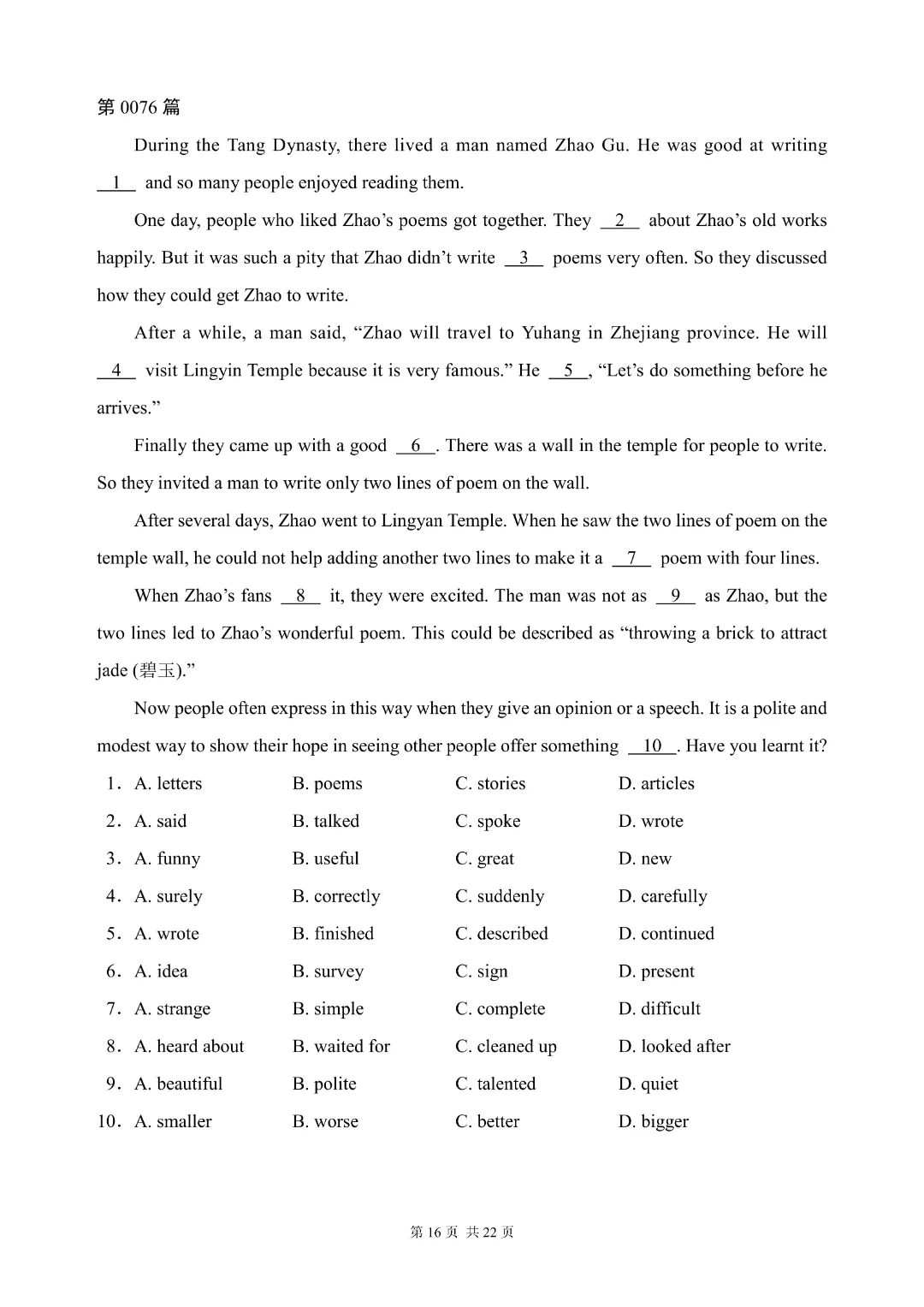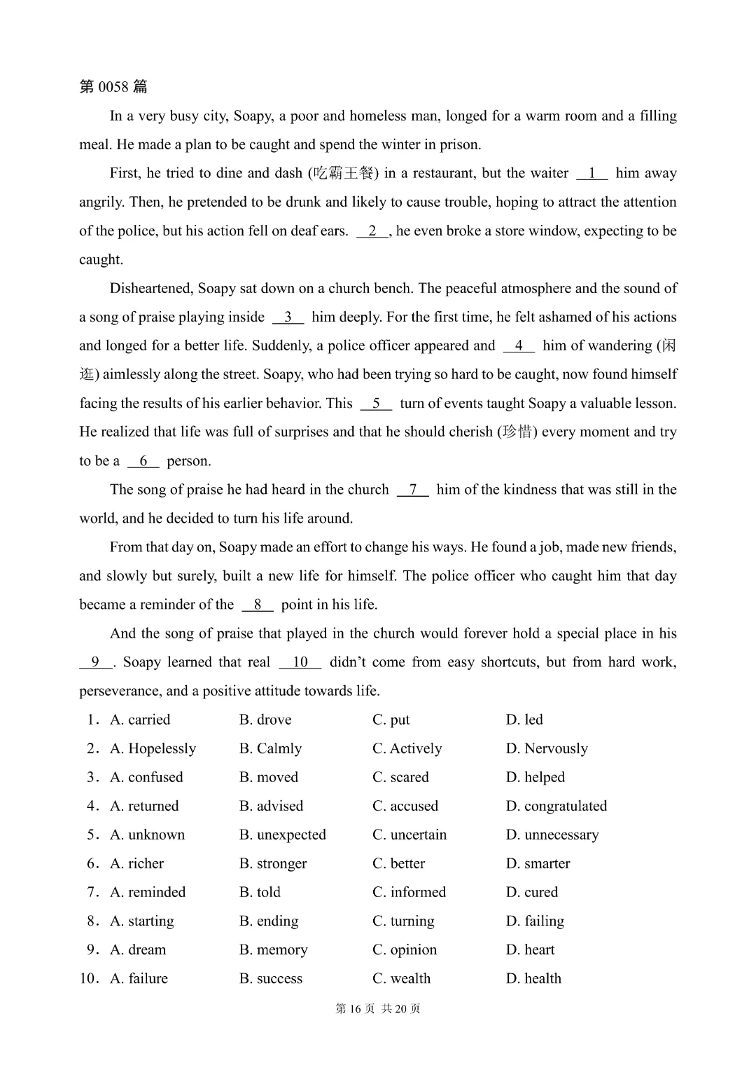 今日给大家分享的是:【2026春新版九年级下册英语通用版】中考英语《完形填空300篇之41-80篇》带答案|完整高清电子版可打印
