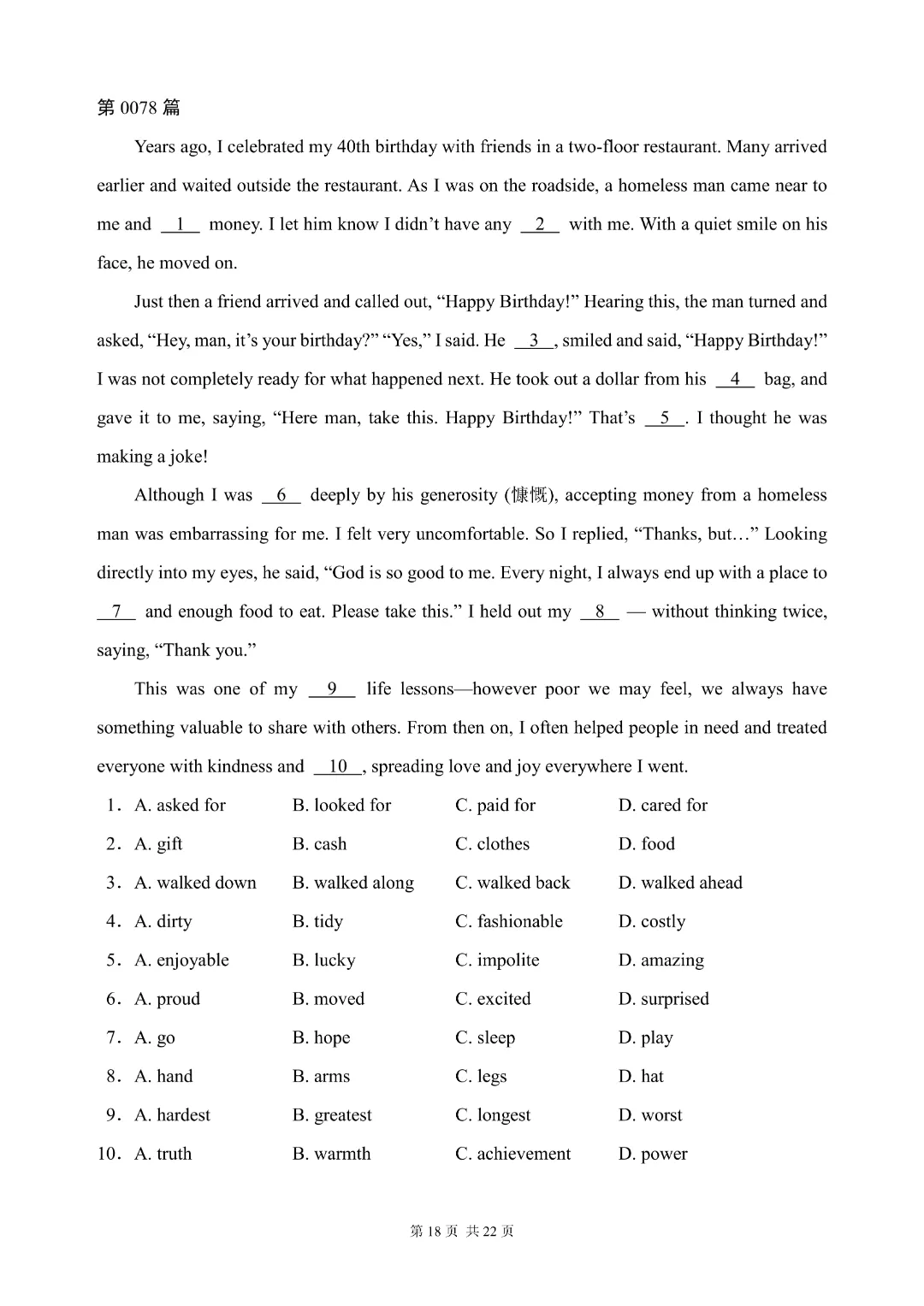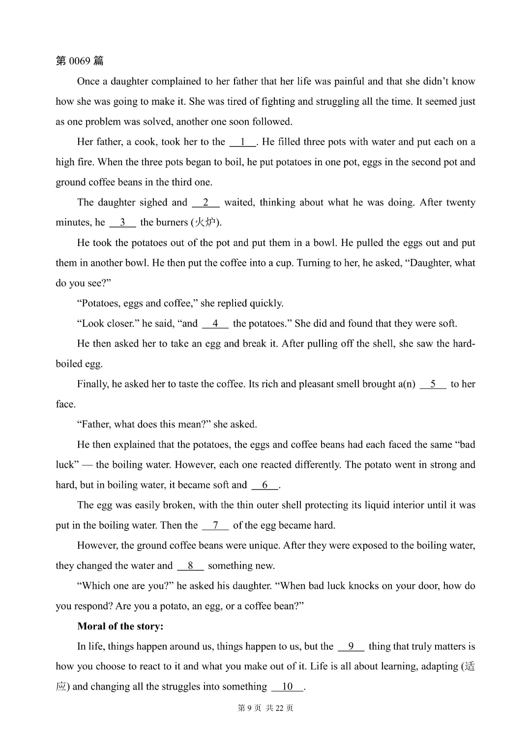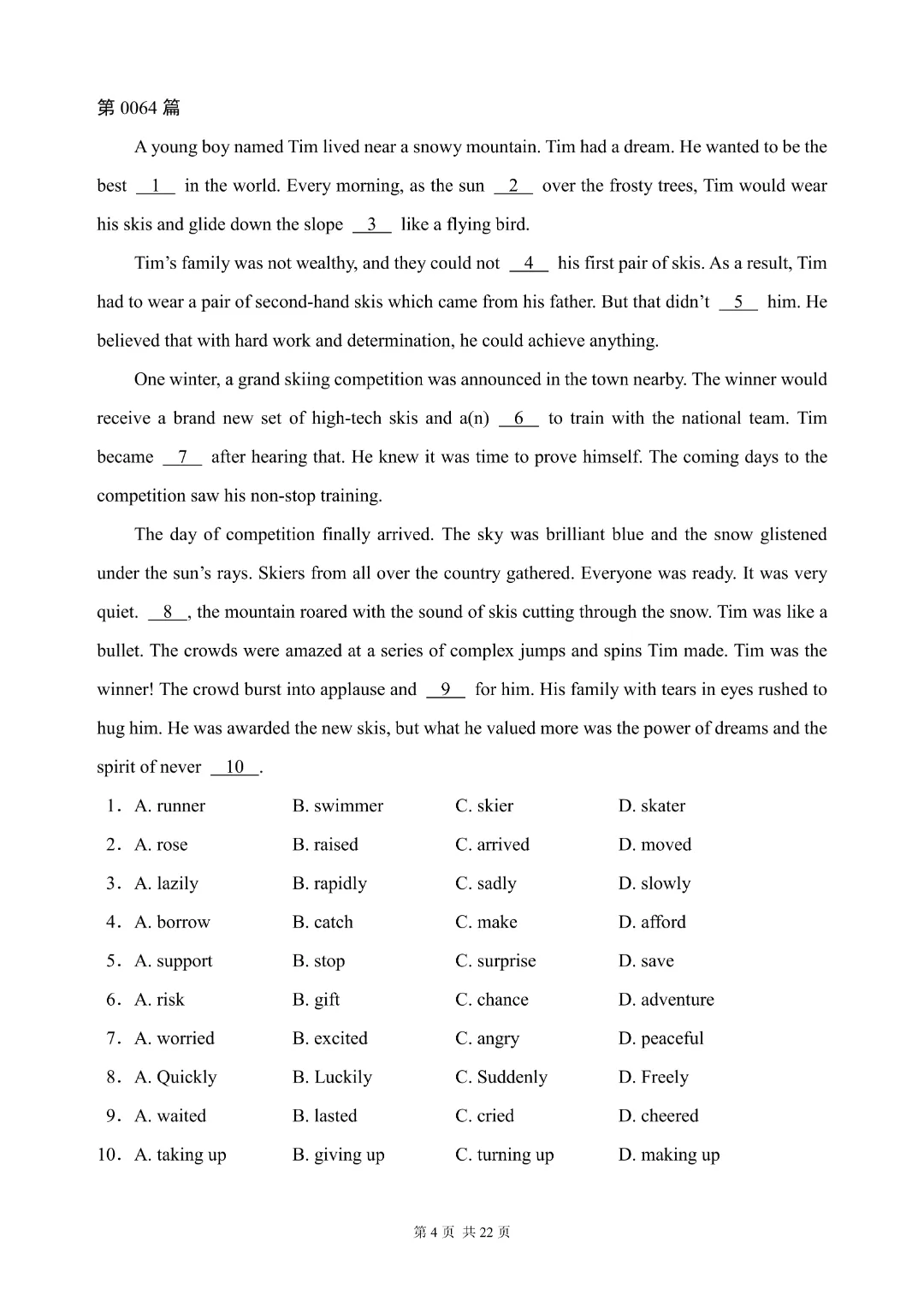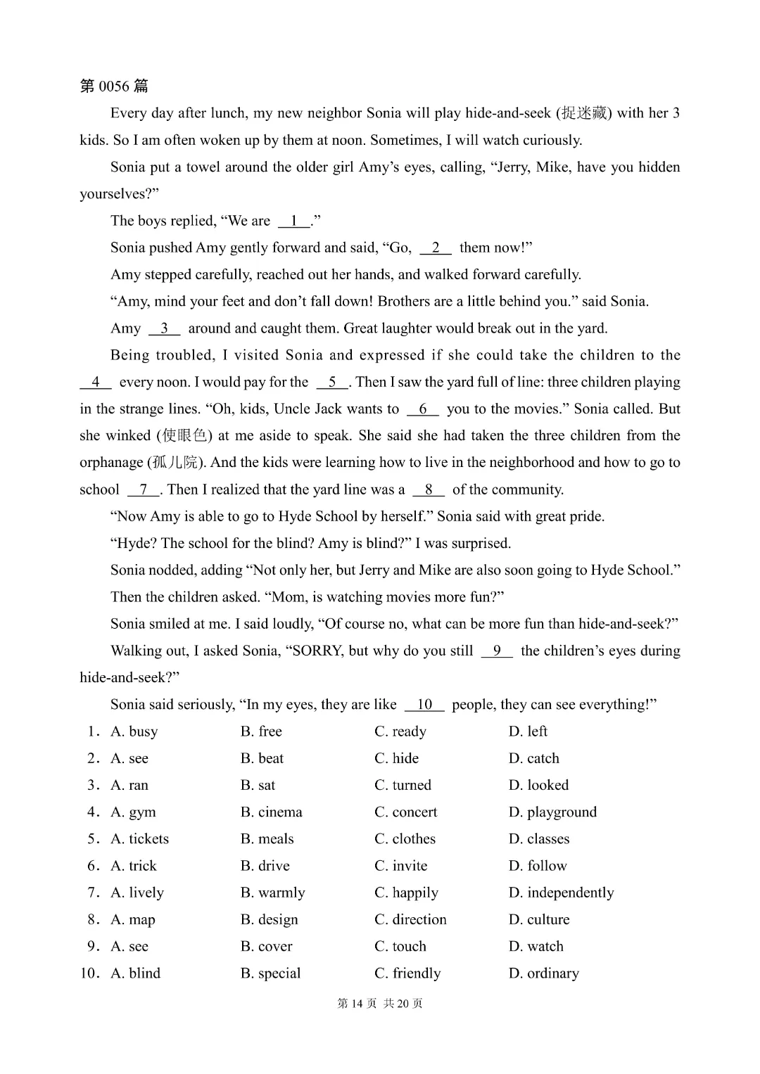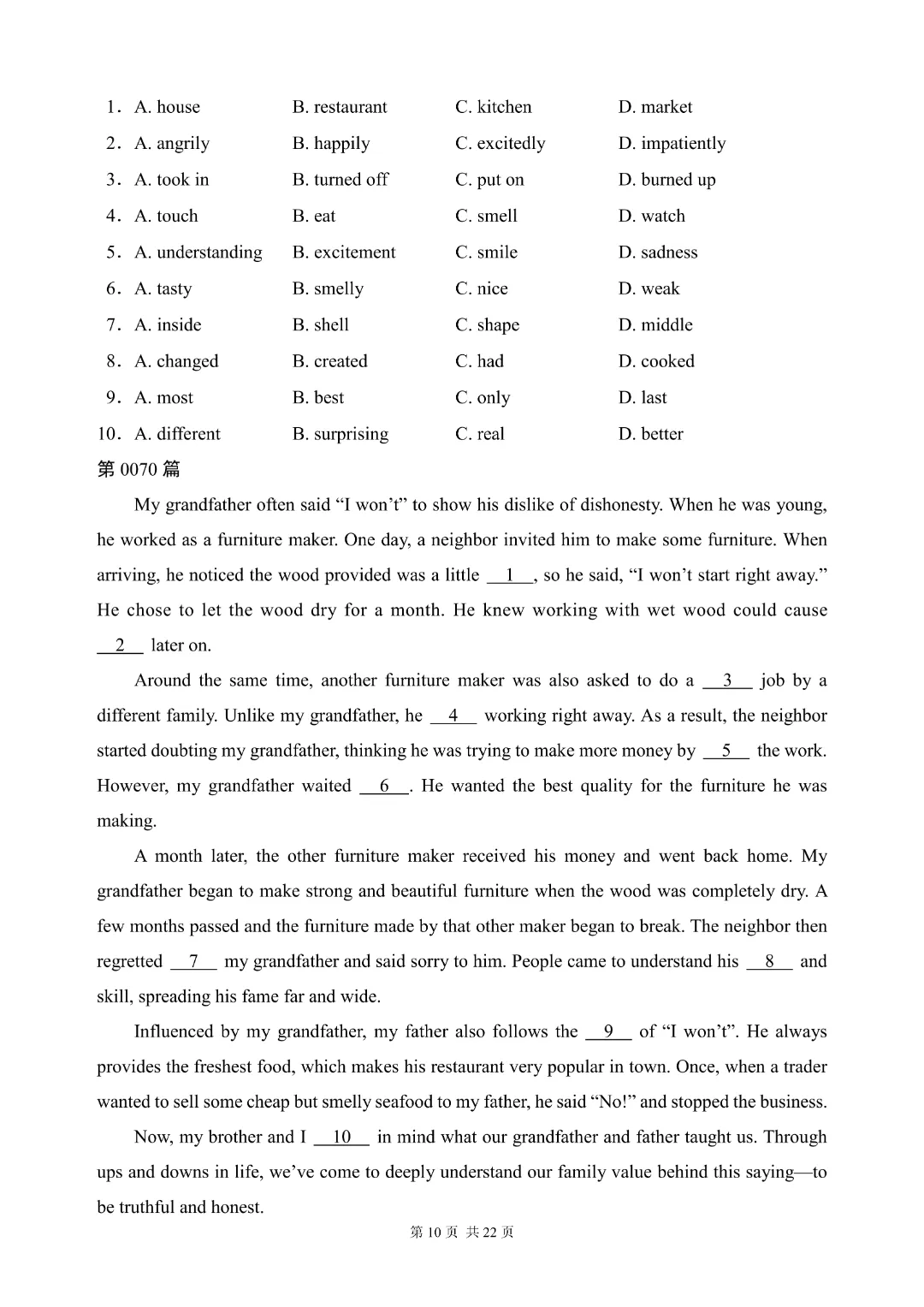 今日给大家分享的是:【2026春新版九年级下册英语通用版】中考英语《完形填空300篇之41-80篇》带答案|完整高清电子版可打印