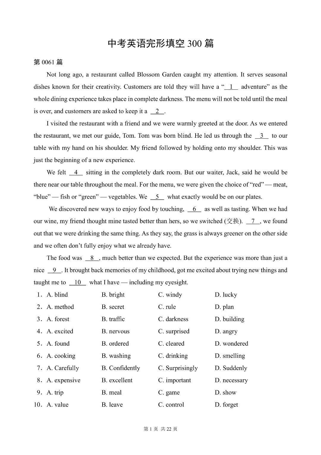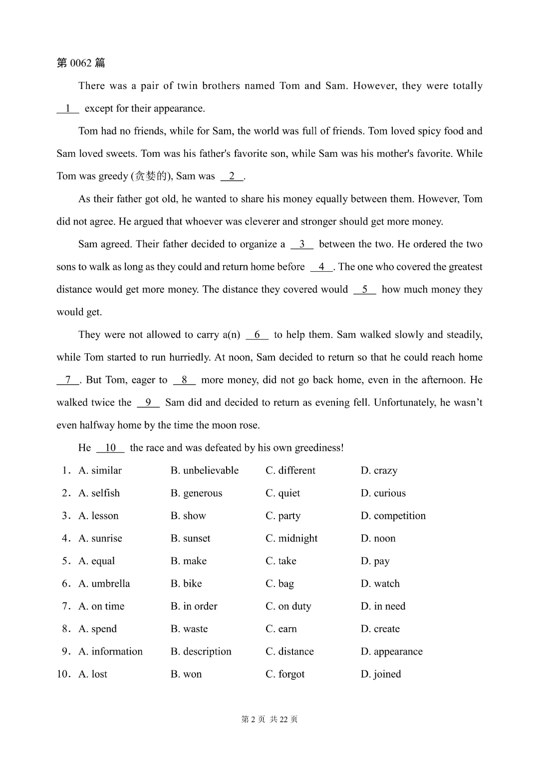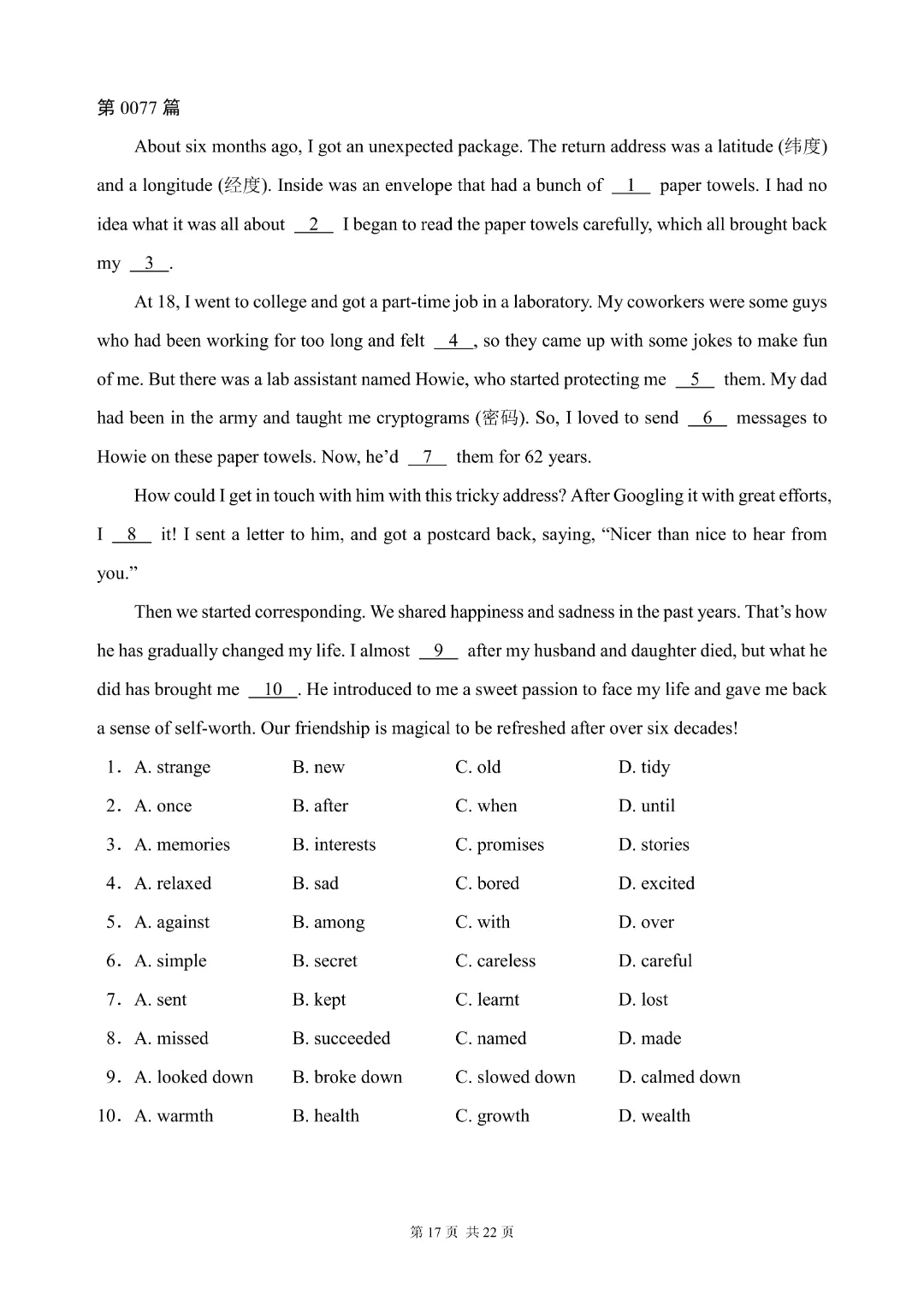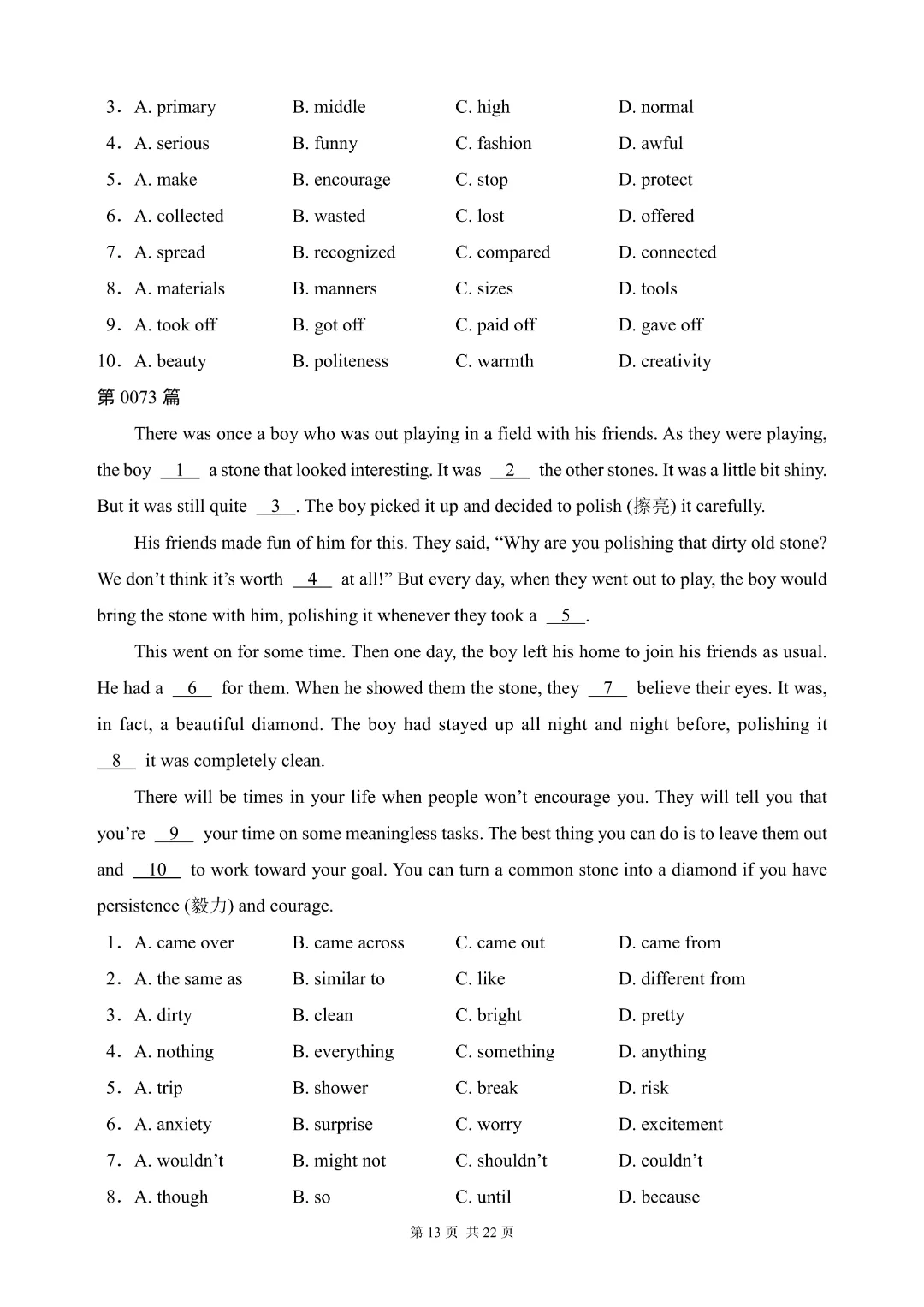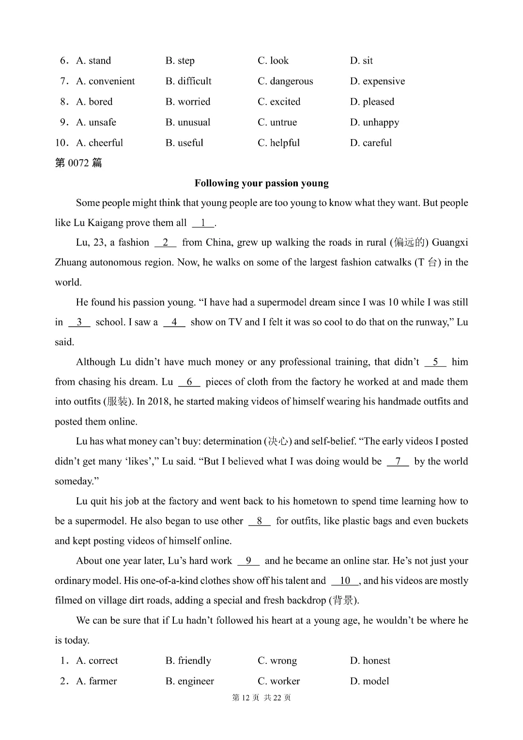 今日给大家分享的是:【2026春新版九年级下册英语通用版】中考英语《完形填空300篇之41-80篇》带答案|完整高清电子版可打印