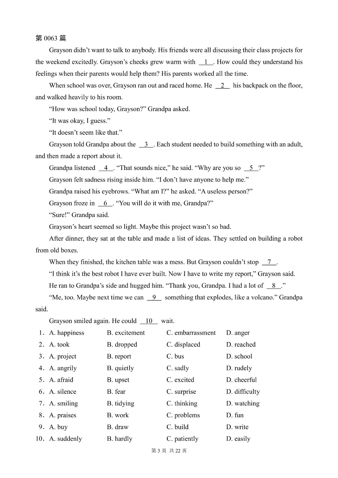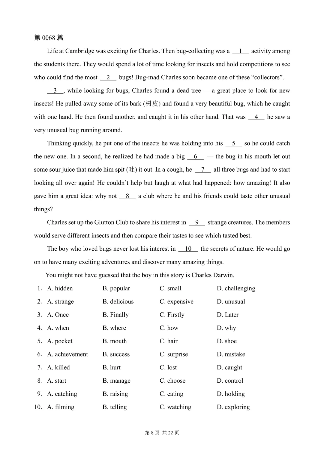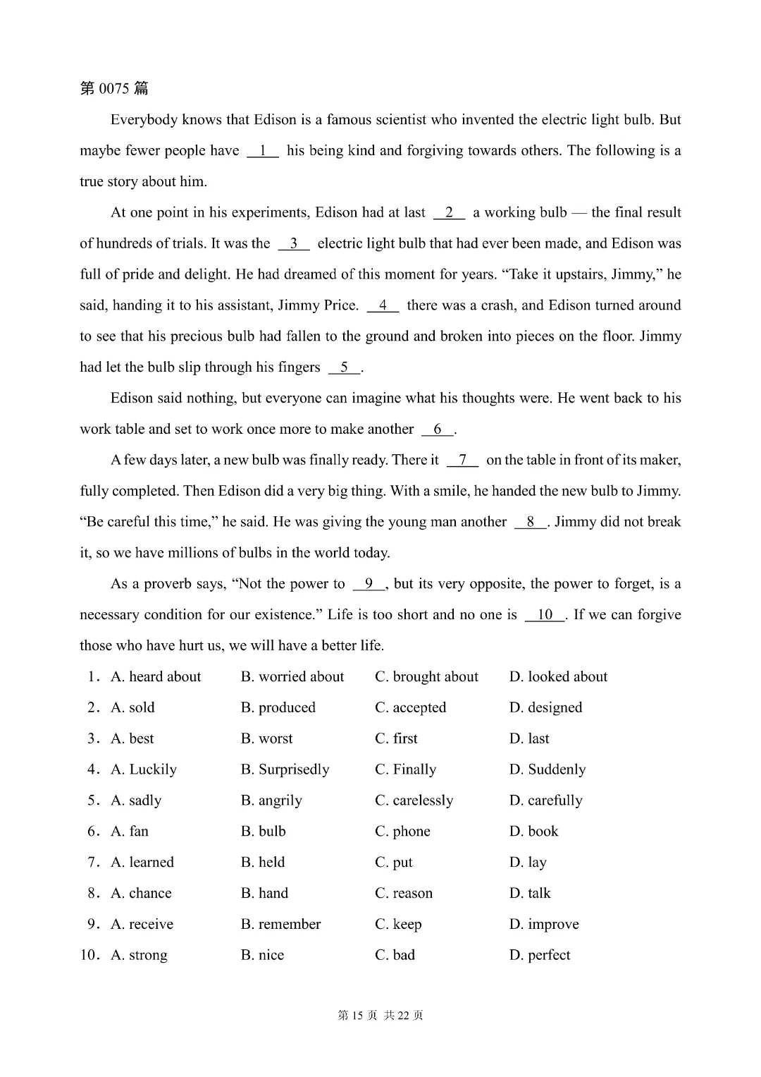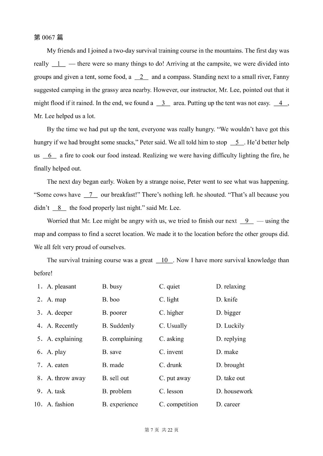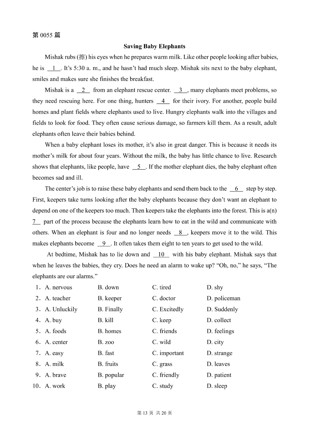 今日给大家分享的是:【2026春新版九年级下册英语通用版】中考英语《完形填空300篇之41-80篇》带答案|完整高清电子版可打印