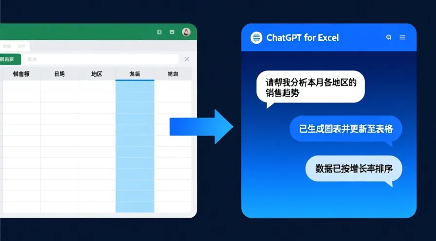 就是一个Excel插件,装上之后,Excel右边会多出一个ChatGPT面板。你不用再记任何函数——用大白话跟它说就行。