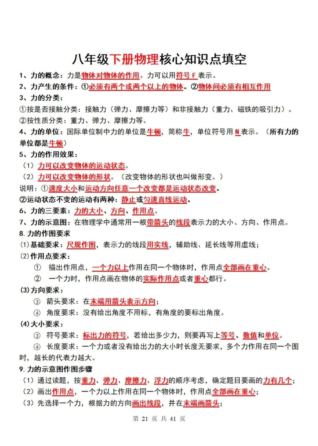 八年级下册物理核心知识点总结(可下载打印) 资源下载见图片底部 资源介绍 电子版PDF文档 网盘下载链接详见页面底部 ▼内容预览▼ 版面所限,此处仅展示部分内容 完整版电子版👇 获取完整电子版方式 👇 点击下方卡片关注 进入“瑶瑶妈妈爱学习”的后台 发送消息 资料下载 获取打印电子版方式 重要说明 版权声明: 本公众号分享的资源,所有文件版权归原作者所有,如有侵权可以联系本人删除。本公众号尊重版权,有任何版权问题,可以直接在公众号留言,我看到后会回复。