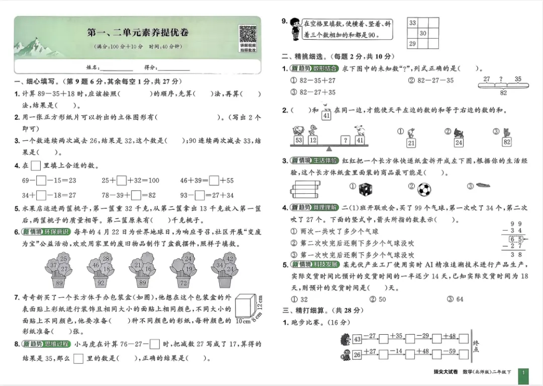 26春北师大版数学《拔尖大试卷》123456下,PDF电子版,免费下载