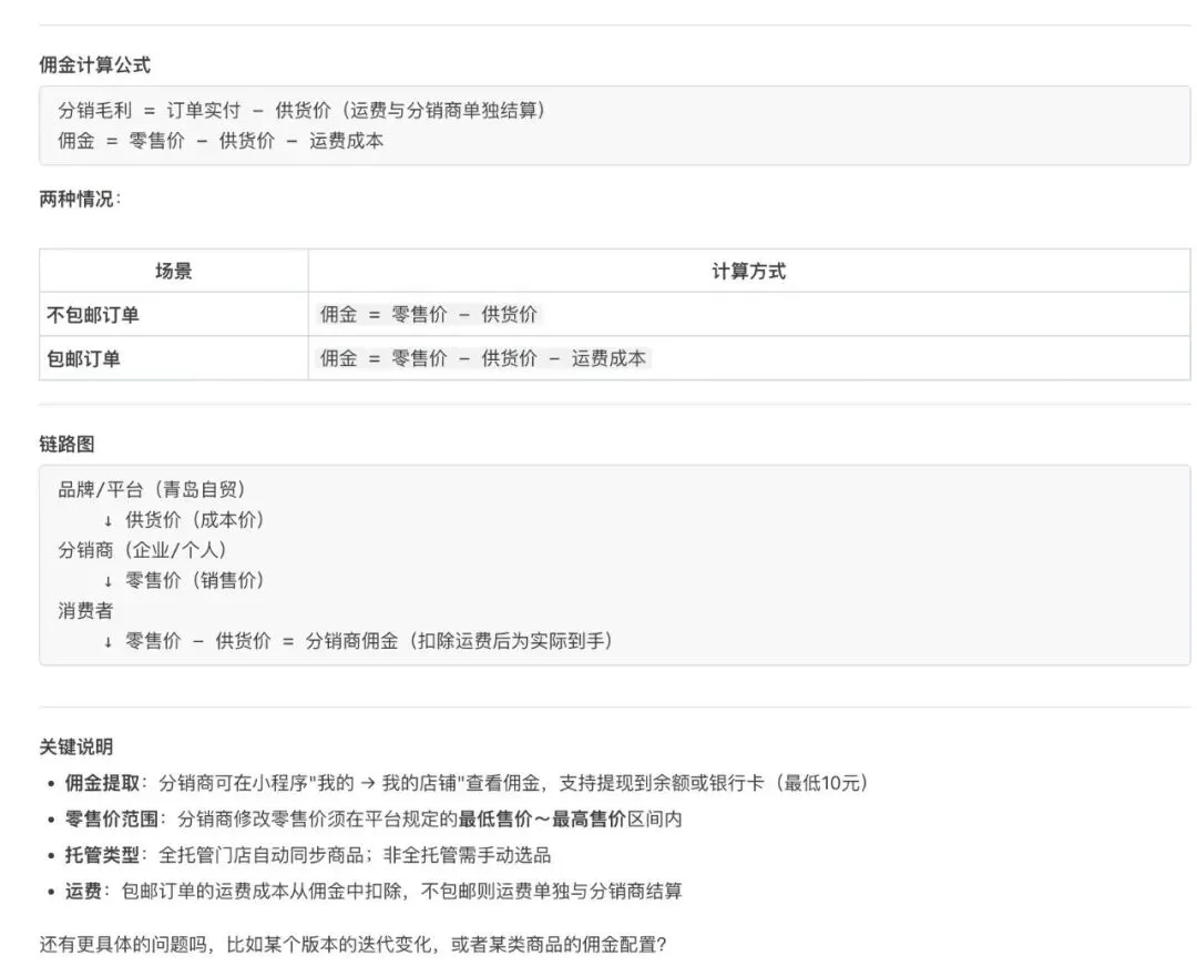 对比测试场景:问分销佣金计算逻辑是什么