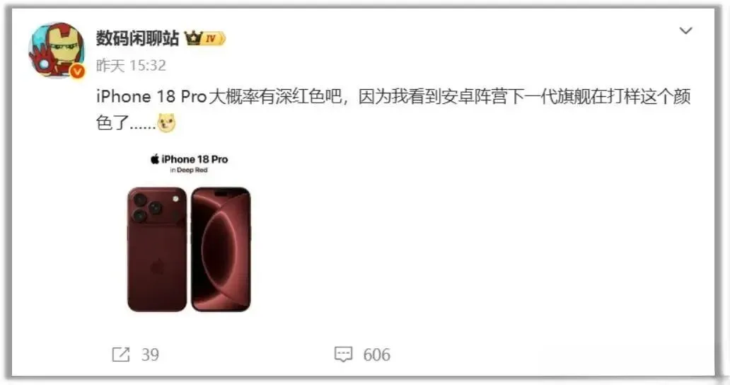 安卓提前复刻iPhone18 深红配色成行业风向标?
