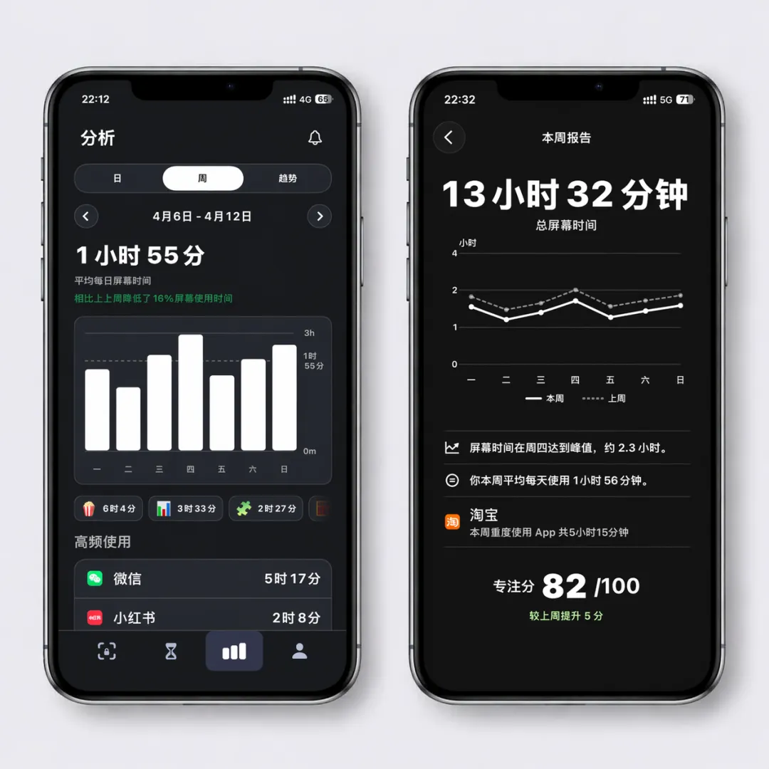5)更清晰的屏幕使用时长图表和你每周屏幕使用时长报告。