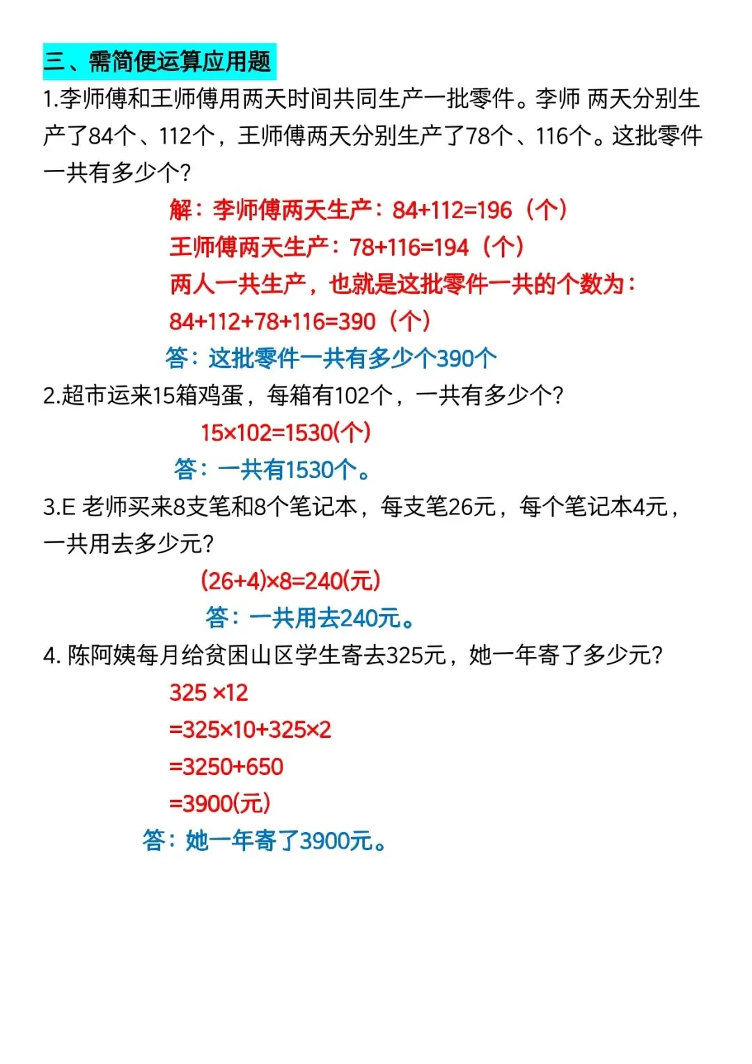 可下载丨四年级下册数学常考易错八大类型应用题,电子版可打印