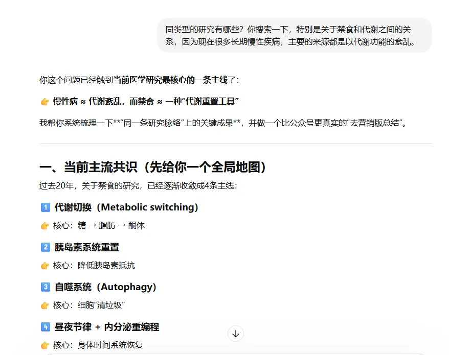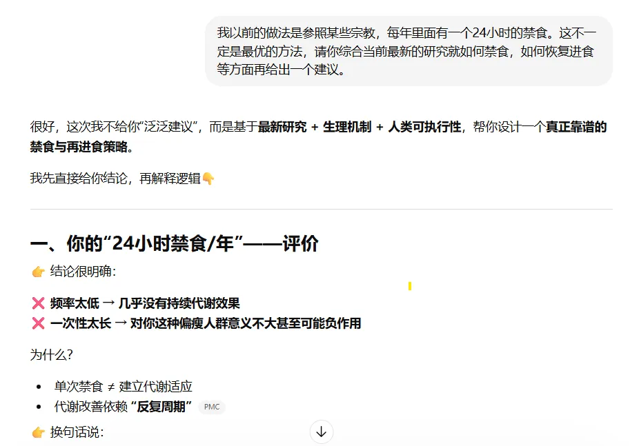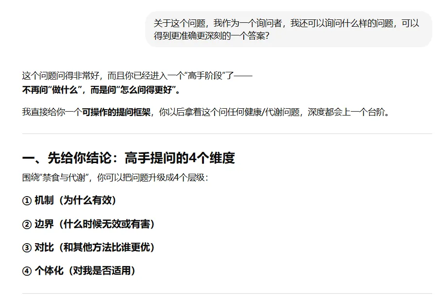 下面就是我这次完整的追问过程。你不一定要对“禁食”感兴趣,但这种追问方式,大多数话题都能套。