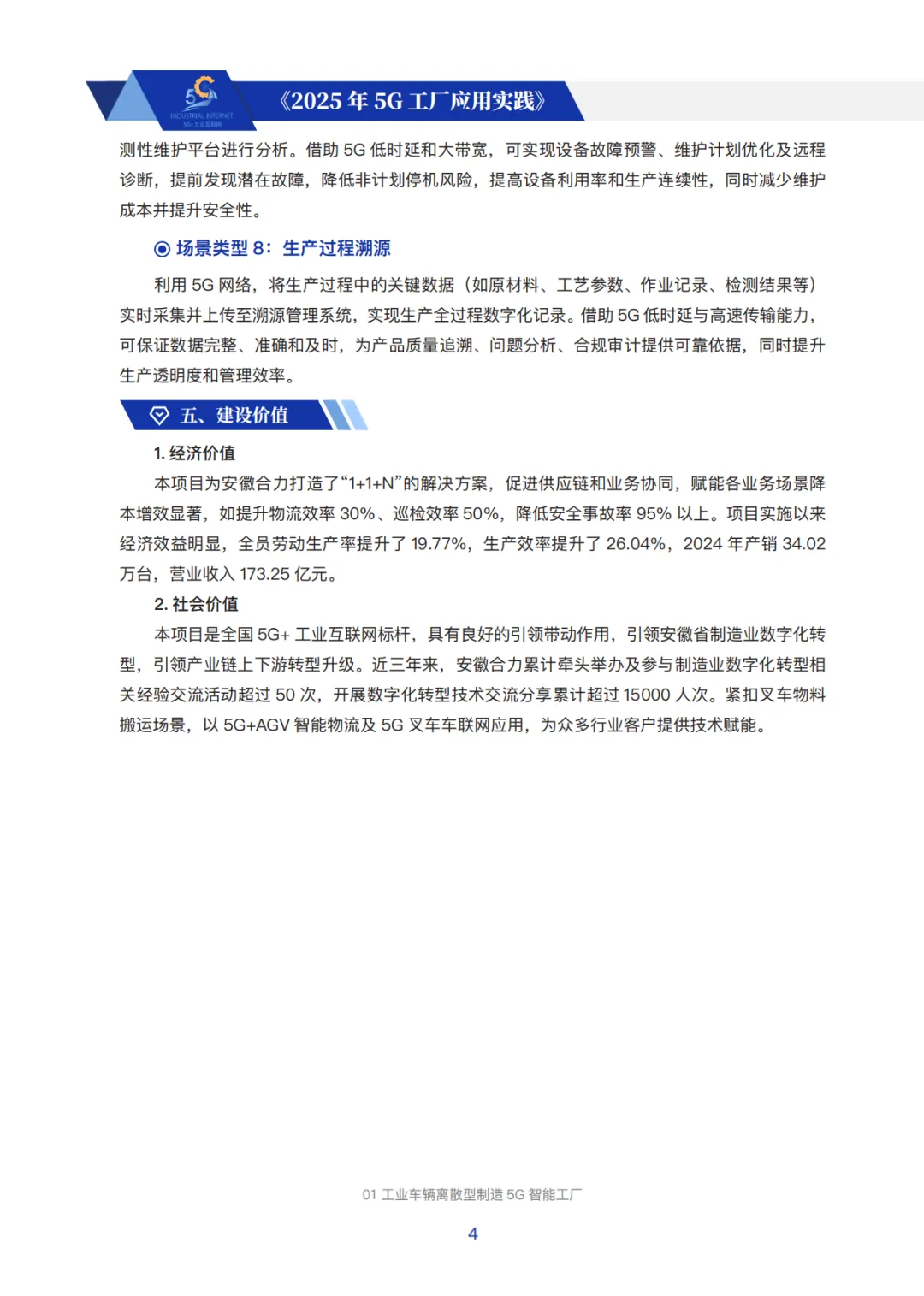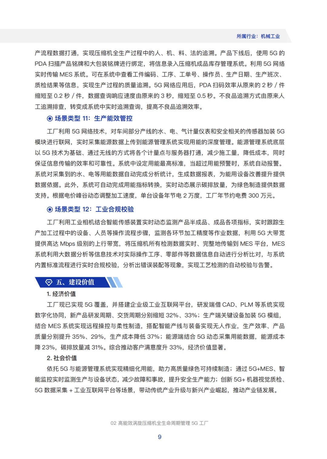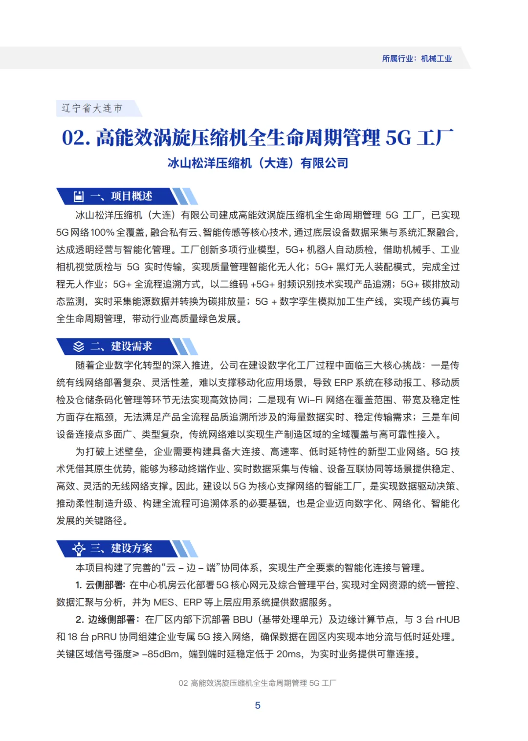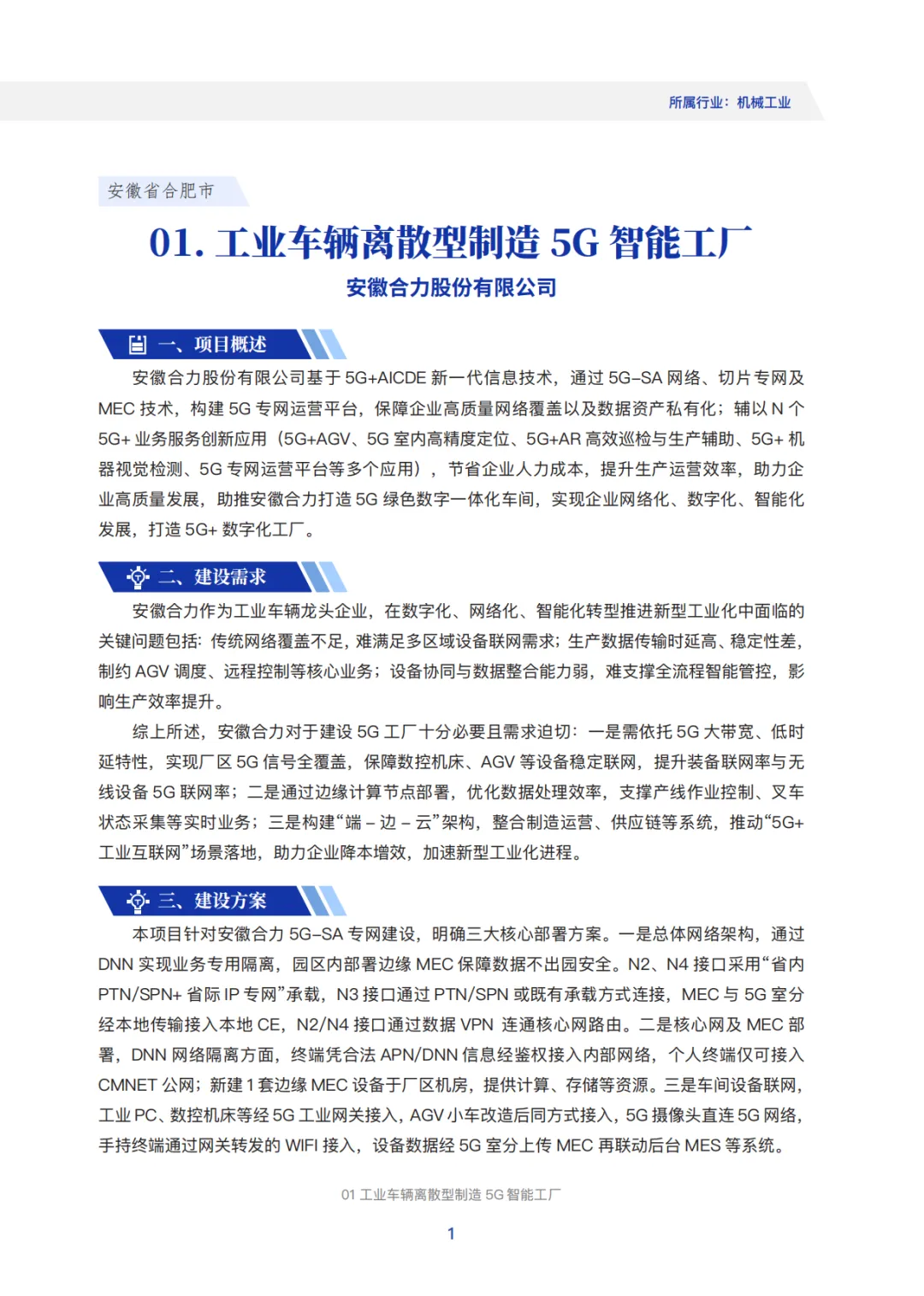 2025年装备工业5G工厂应用实践报告,聚焦机械、汽车、船舶、航空发动机及燃气轮机、电力装备五大行业,梳理25个标杆项目的实践经验。这些项目统一采用5G-SA专网搭配MEC边缘计算的端-边-云架构,深度落地机器视觉质检、AGV智能物流、设备预测维护等核心场景,普遍实现生产效率、成本控制与能耗管理的显著优化,为装备制造行业的数智化转型提供了规模化可复制的实践路径。