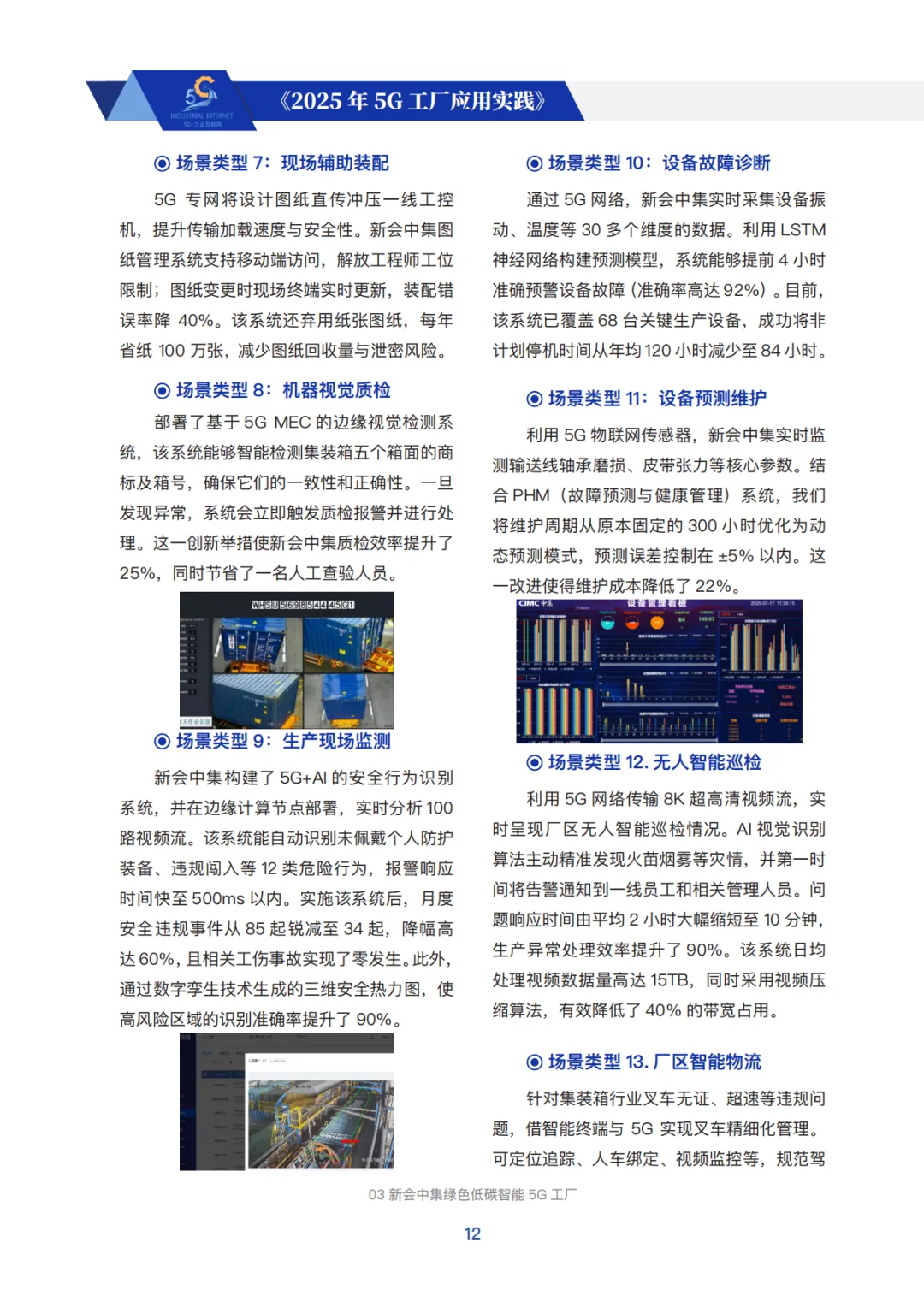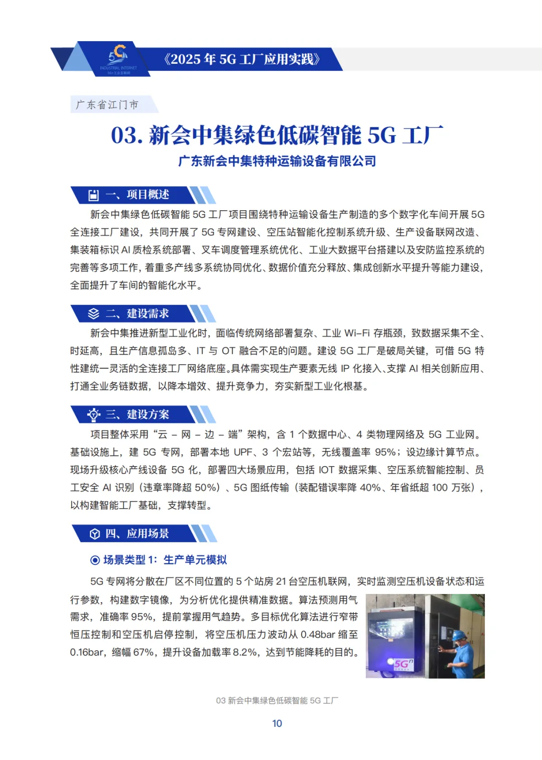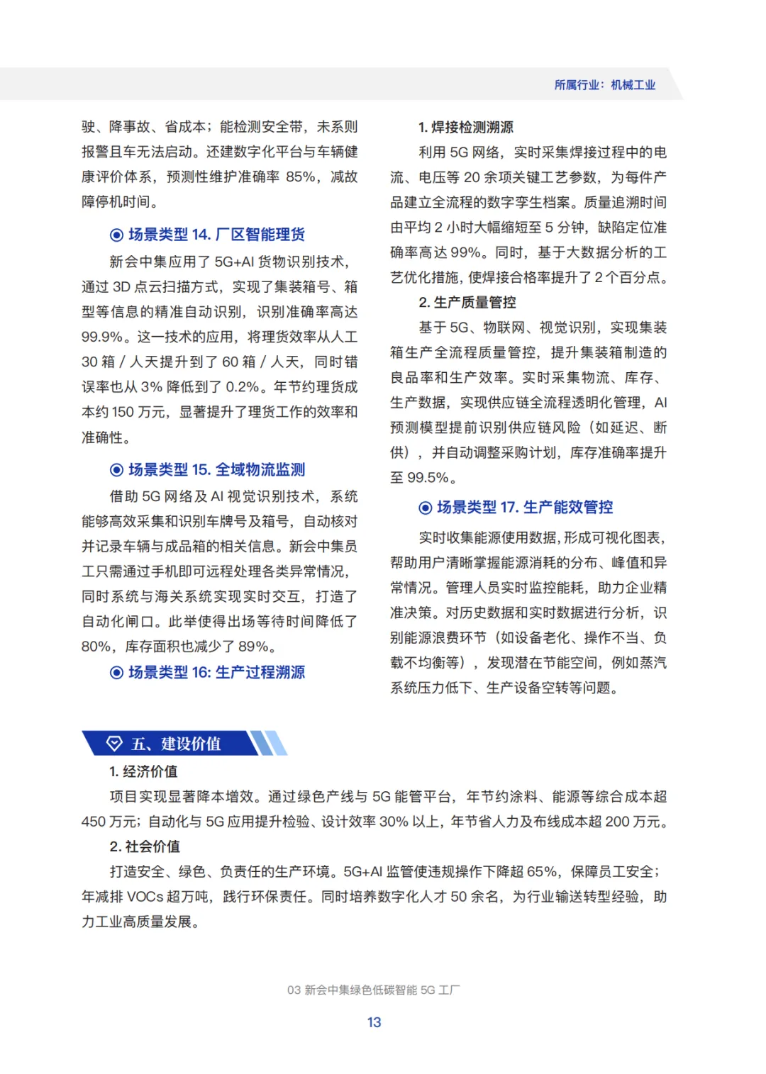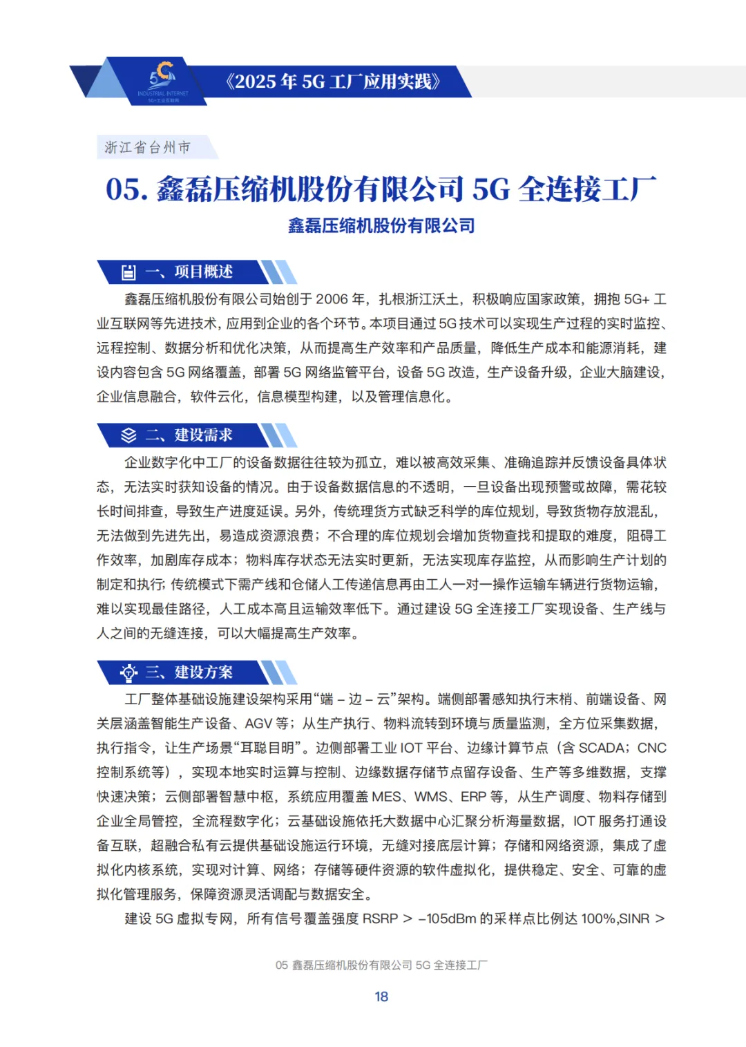 2025年装备工业5G工厂应用实践报告,聚焦机械、汽车、船舶、航空发动机及燃气轮机、电力装备五大行业,梳理25个标杆项目的实践经验。这些项目统一采用5G-SA专网搭配MEC边缘计算的端-边-云架构,深度落地机器视觉质检、AGV智能物流、设备预测维护等核心场景,普遍实现生产效率、成本控制与能耗管理的显著优化,为装备制造行业的数智化转型提供了规模化可复制的实践路径。