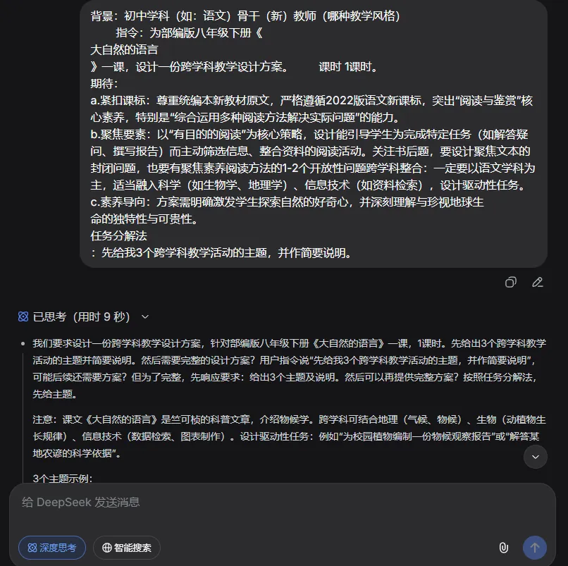 任务分解法:先给我3个跨学科教学活动的主题,并作简要说明。
