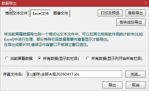 根据需要选择要导出的数据,因为我们要用到所有的个股前面的数据,所以选择显示的栏目就可以。