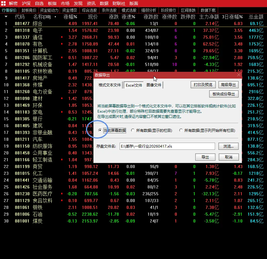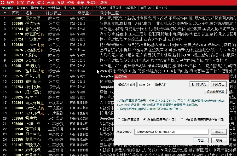通达信软件用法——个股所属三级行业提取的数据处理