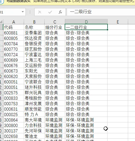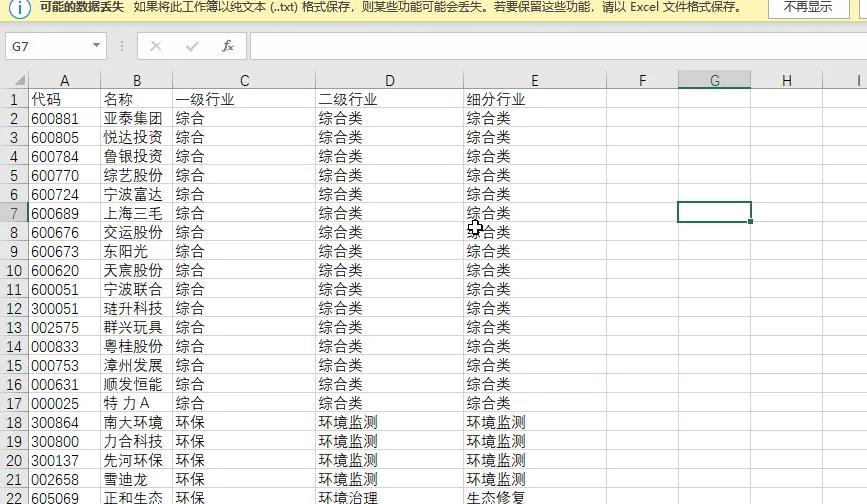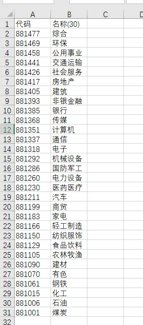 如果要关联起来,还要把他们和行业的代码关联起来,导出一下一级行业做例子