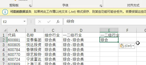 复制第一行的一二级行业到右边单元格,复制 第二行的银行到右边单元格
